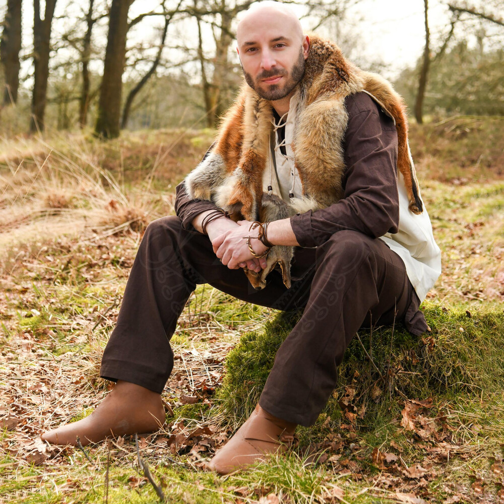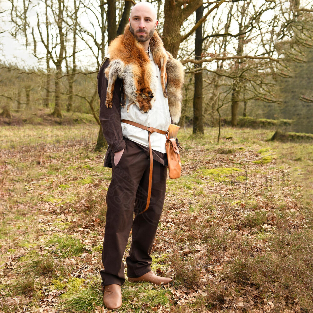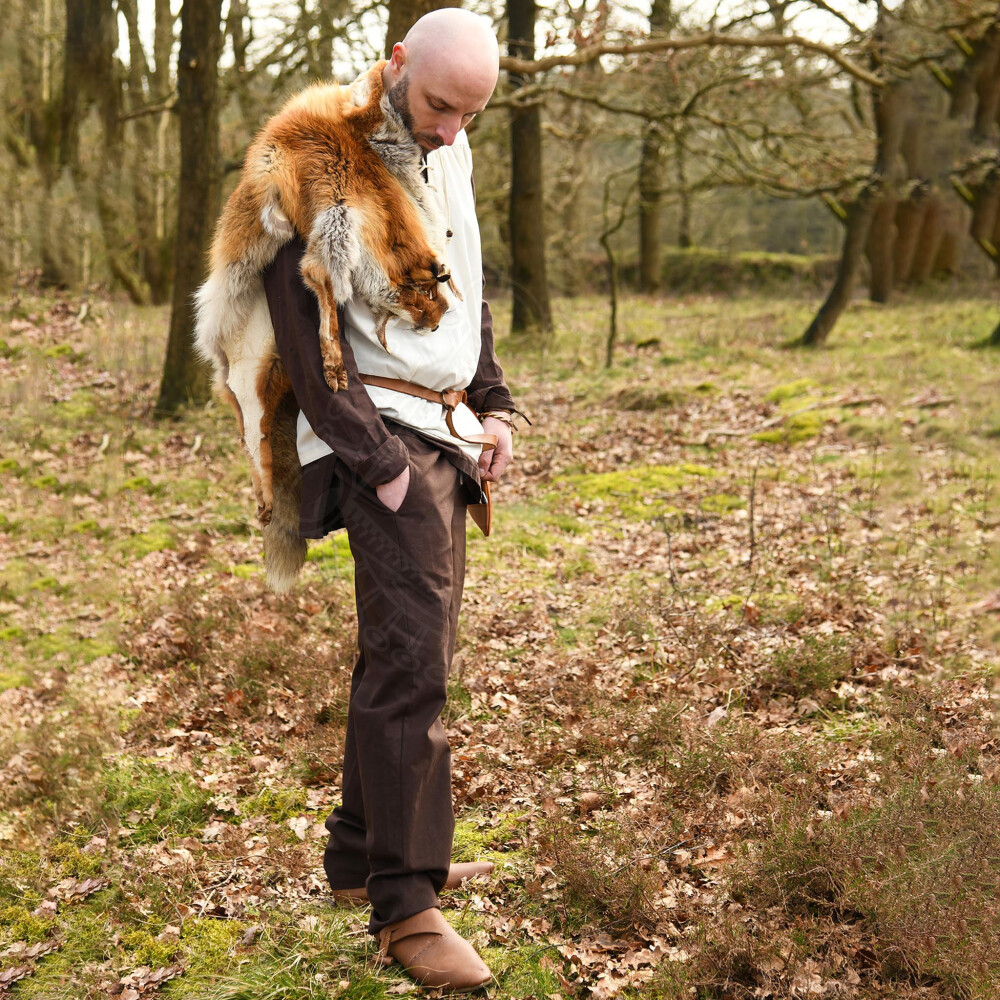 These medieval trousers are part of the collection for historical garments and medieval clothing for men, women and children. From the first drawing to the last stitch, this garment has been planned, designed and produced with special attention to detail using genuine craftsmanship. We base our clothing more or less exactly on historical models, grave finds or museum artefacts, where these exist. We minimise alterations, e.g. to adapt to modern sizes and working methods. See for yourself!