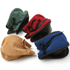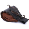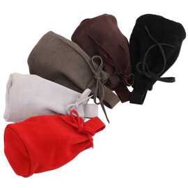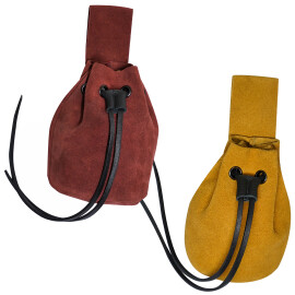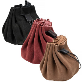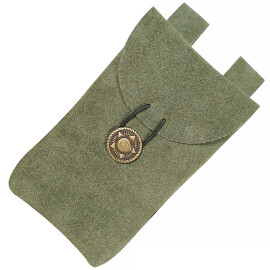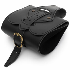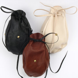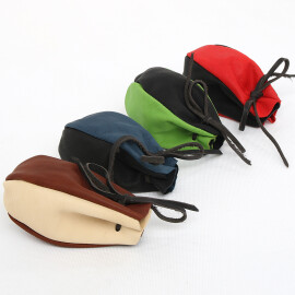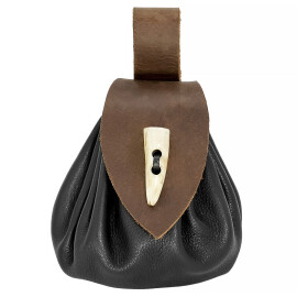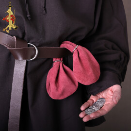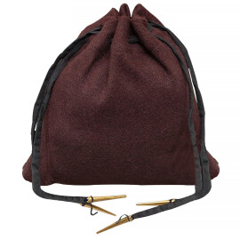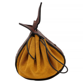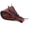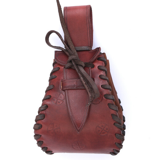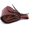 This Norman pouch dating back to the 9th century is made of 2.5mm thick smooth cowhide. The pouch's sides are made of fine cowhide that enables simple constricting and expanding of the bag's opening. The luxurious pouch is worn suspended on the belt via a decorative loop that changes into a simple flap on the other side, which is used to close the product. The front and rear parts are bonded with the pleated side via an interwoven leather strip. Further product information ...