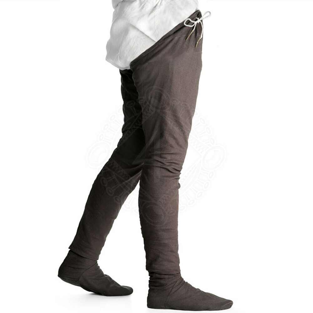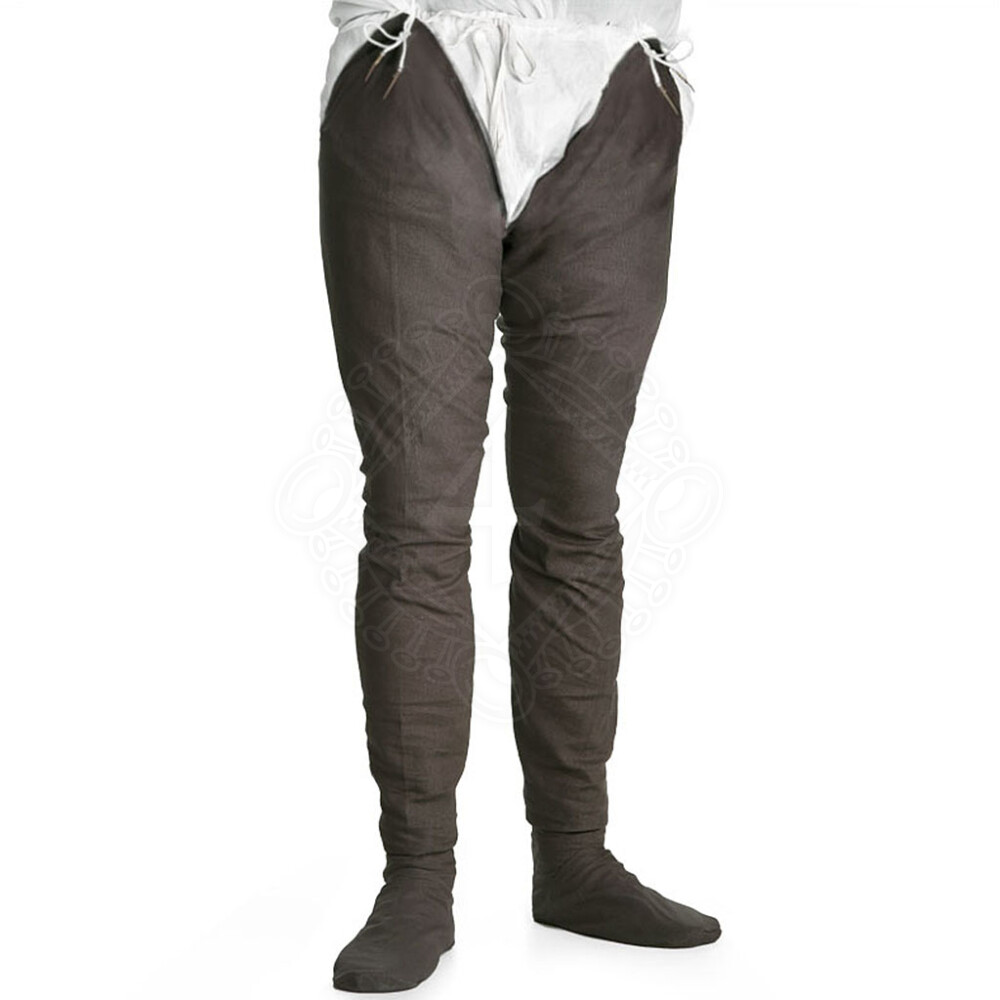Essential garment for the time from the end of 12th cen. to beginning of the 14th cen. Used under the tunic and over the pants, it was the garment used by men of this time to cover their legs under the armour. These cotton chausses are available in several colours, that ware usually chosen in a contrast colour to the tunic. They are available in sizes M, L and XL as described below. As it was done in the middle ages, men of smaller sizes can overlap the leg tips, bigger men can cut off the tips and protect the legs additionally. Further product information ...