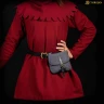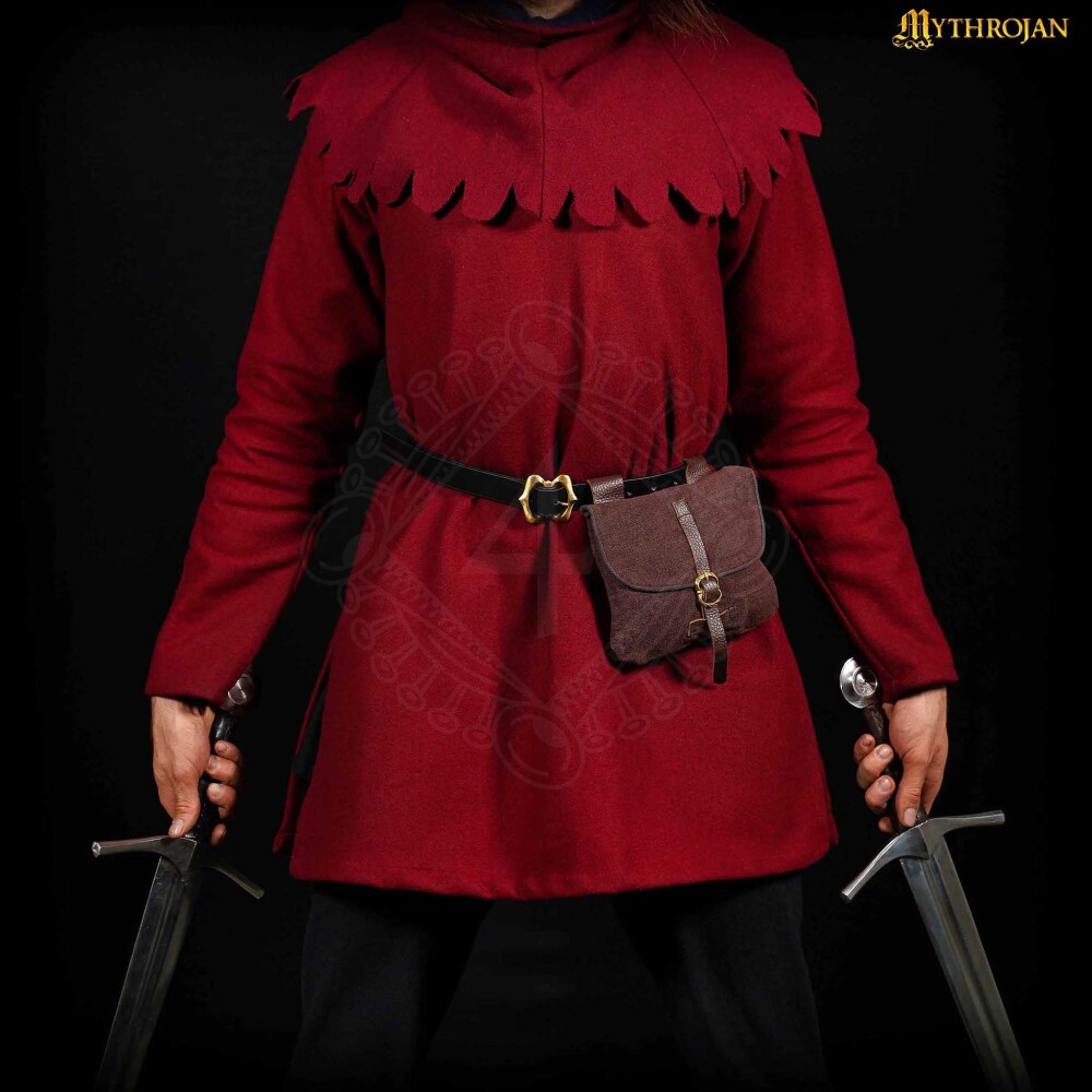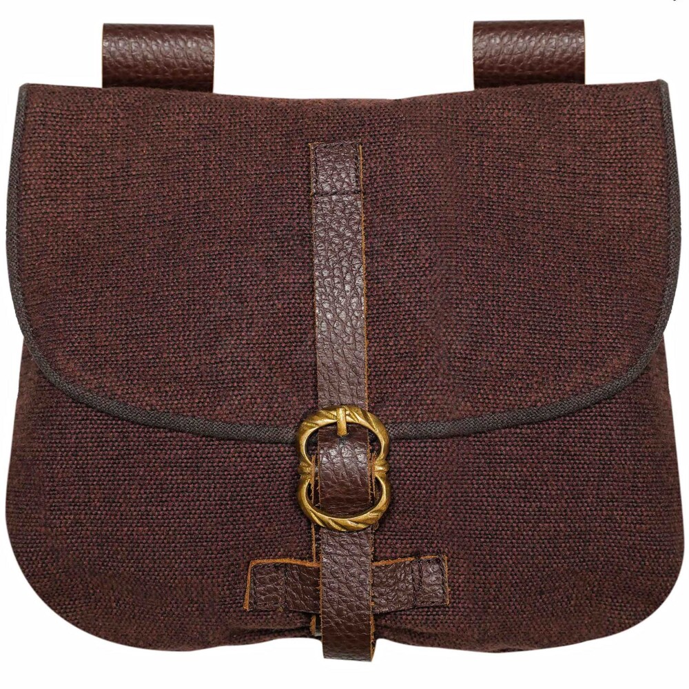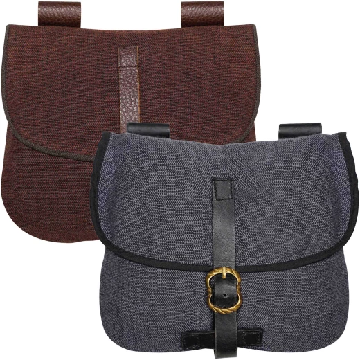 This robust late medieval belt pouch by Mythrojan® is crafted from a combination of high-quality, handwoven canvas and sturdy full-grain leather. Its authentic design, featuring the distinct texture of canvas, a leather strap, and an ornate brass-colored buckle, makes it an ideal accessory for your historical costume for LARP, SCA events, reenactments, period markets, or any fantasy adventure. Not only does it perfectly complement your look, but it also reliably stores all your essentials. Further product information ...