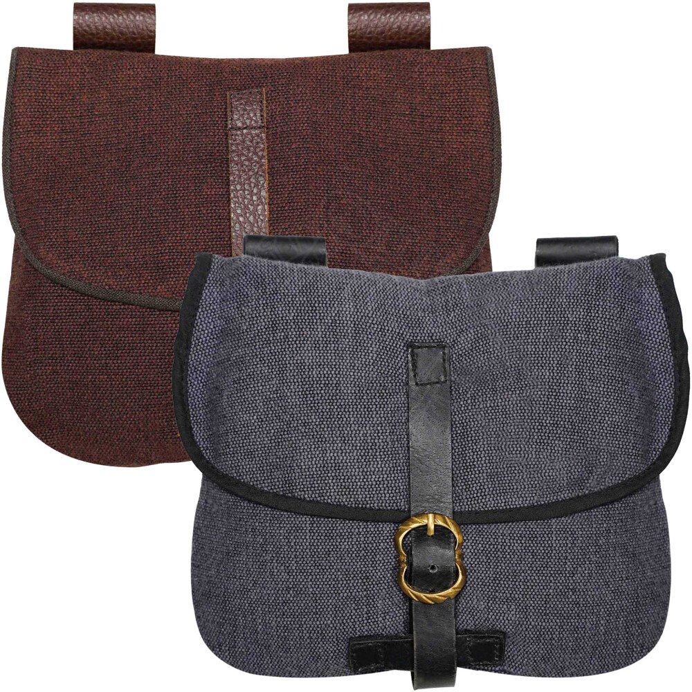 Mythrojan Late Medieval Canvas & Leather Belt Pouch with Buckle (6x7 Inch)