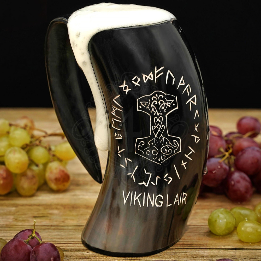 Viking Horn Tankard with Thor's Hammer (Mjölnir) and Runes