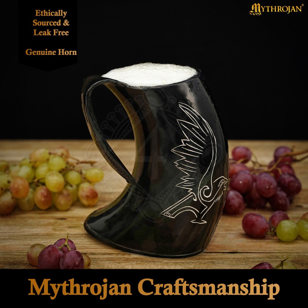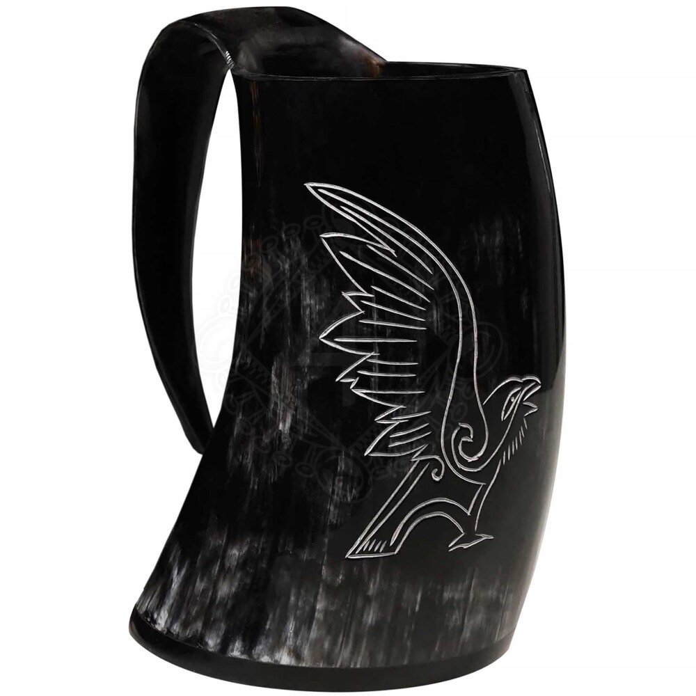 Viking Horn Tankard with Engraving of Odin's Raven