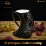 Toast with the wisdom of Odin himself from this magnificent tankard, crafted from genuine horn. Its polished surface is adorned with a precise engraving of a raven, the symbol of one of Odin's faithful messengers – Huginn or Muninn, who bring him news from the nine worlds. This premium tankard by Mythrojan is handcrafted from ethically sourced natural material, which makes each piece a unique original. The interior is treated with a food-safe resin for 100% leak-proof safety. This is not just a cup; it is an artefact for those who seek knowledge and draw inspiration from the ancient sagas. Further product information ...