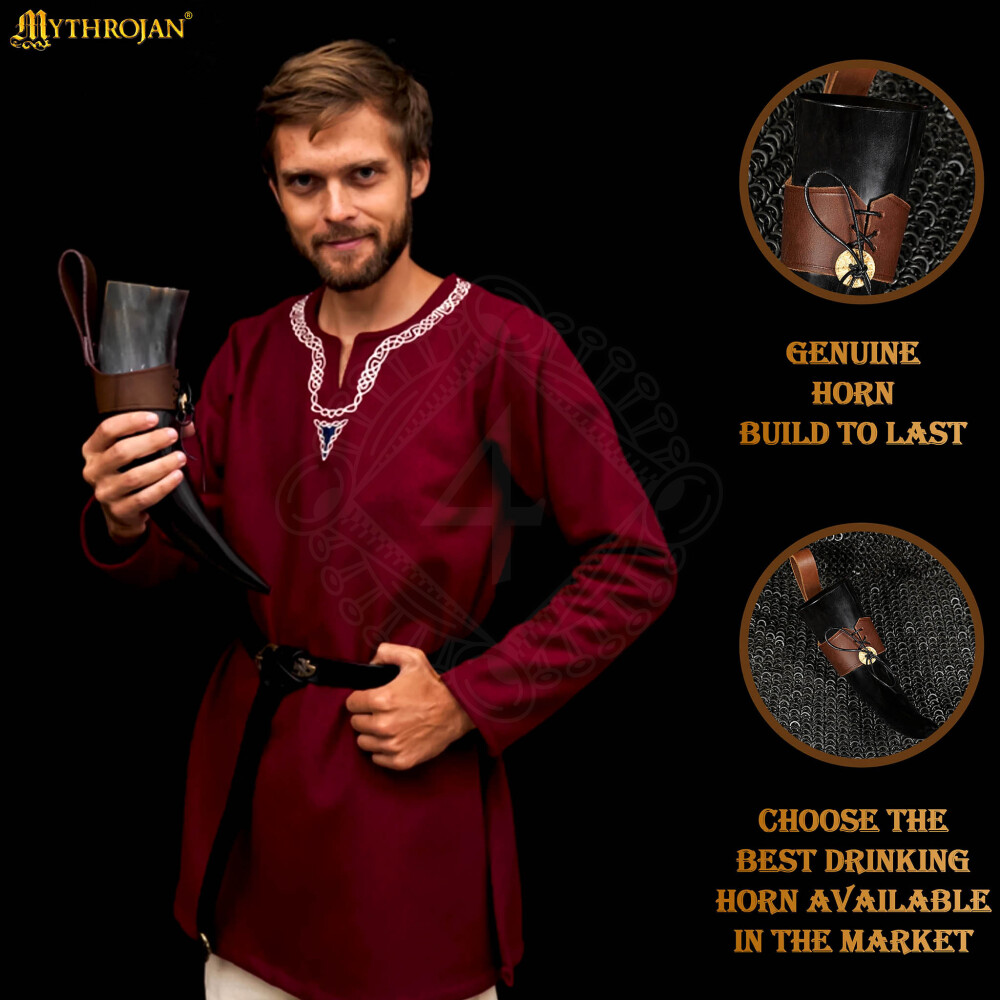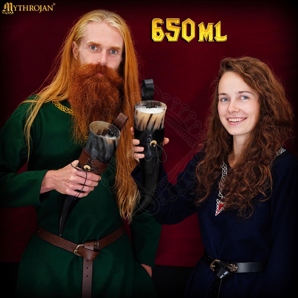 Authentic Viking Drinking Horn from Real Horn with Leather Belt Holder (400/500/650ml)