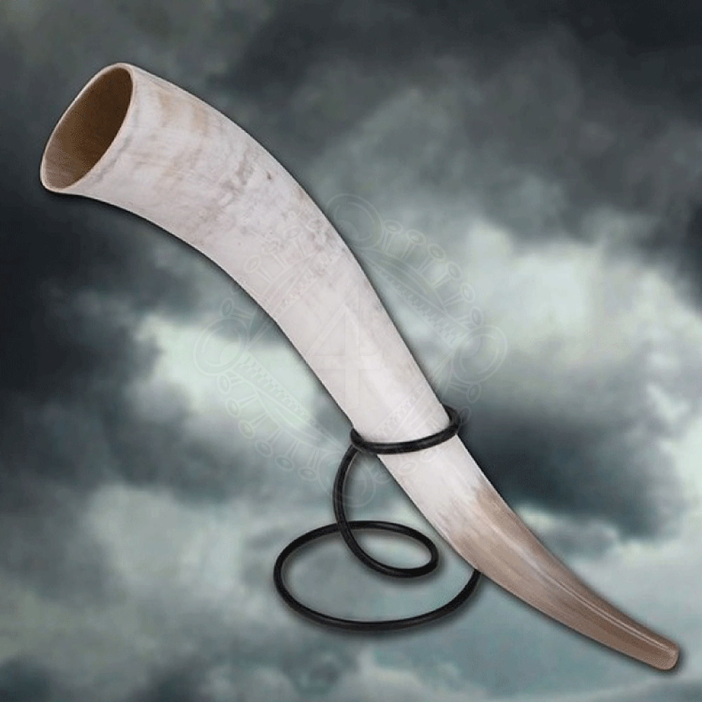 This oversized Viking drinking horn comes with a leather holster so you can carry it at your side as well as an iron stand to keep it upright while drinking or on display. Further product information ...