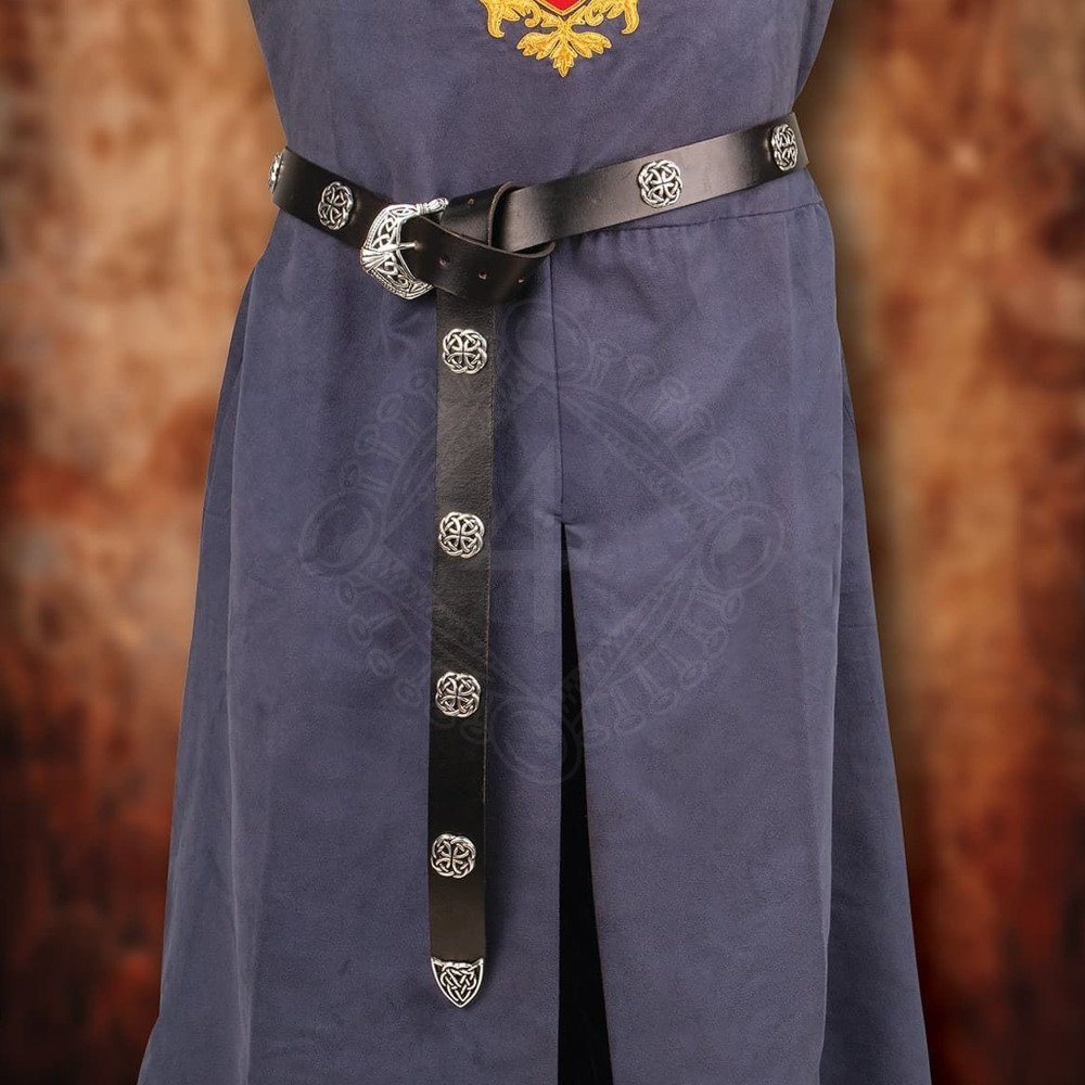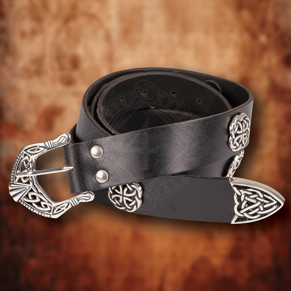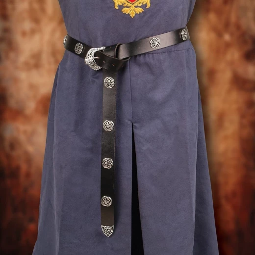 Made of high-grade black leather, this 169 cm long belt has an elaborate silver buckle and tongue with twelve Celtic knot work crosses along the length. It is perfect for a wide range of periods from Viking through the high Middle Ages. Further product information ...