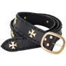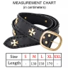 The belt is embellished with solid brass studs in the shape of a Cross Pattée (often associated with the Iron Cross or Maltese Cross styles) and features a sturdy solid brass buckle. The contrast between the brass and the leather makes for a visually striking piece.