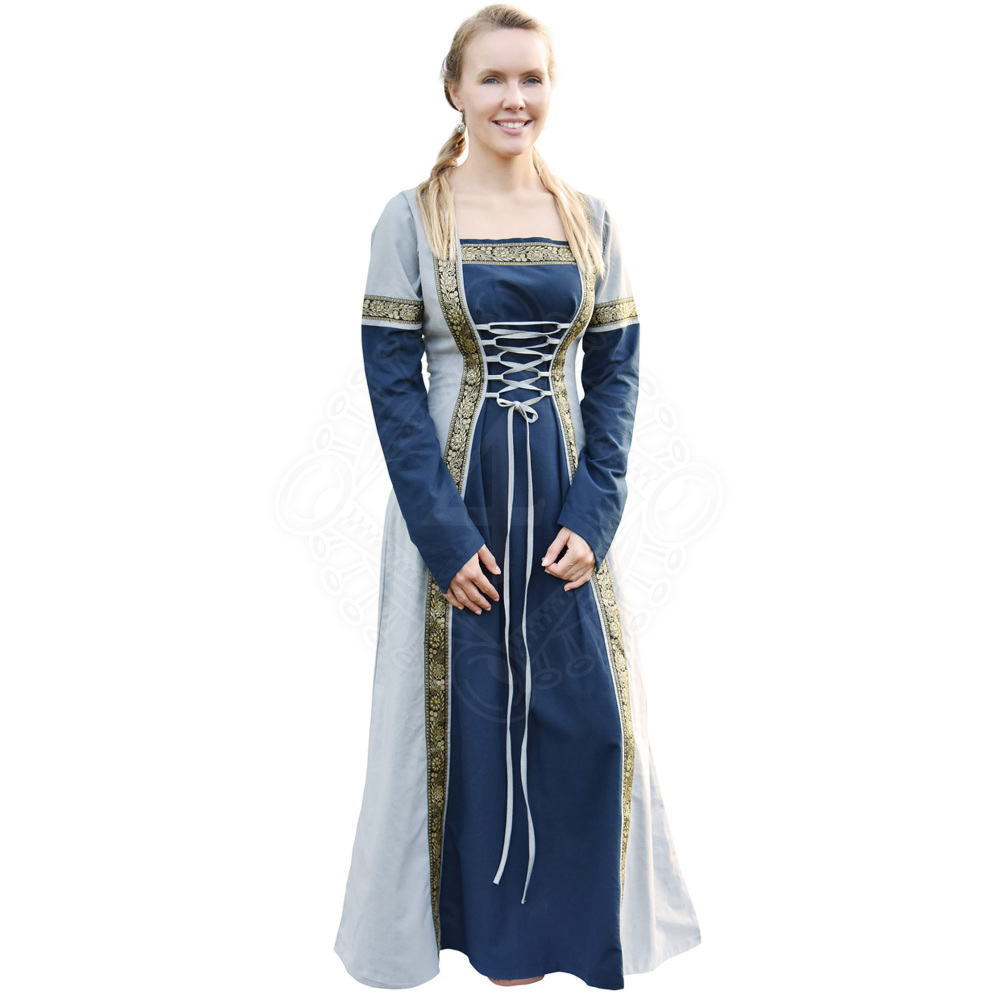 This elegant medieval dress has a two-coloured layered look and is made from cotton fabric. It has a tight cut and is additionally laced at the front and back. If you prefer to wear the dress loose, you should order one size larger. The tight-fitting sleeves are tapered at the back, giving them a particularly elegant look. Further product information ...
