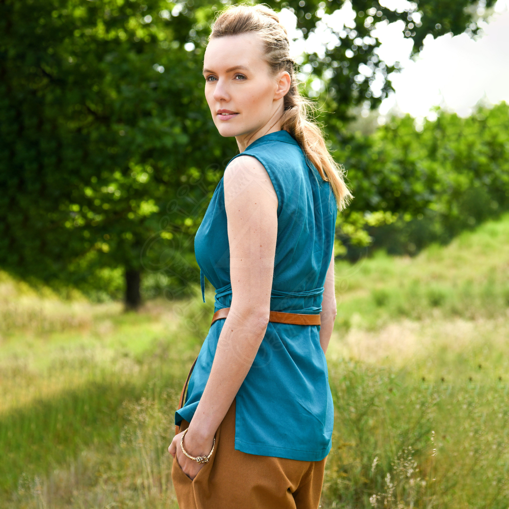 This summer blouse made from lightweight cotton fabric has a loose cut and a tie fastening under the chest for a close fit. The neckline is slit and has a small stand-up collar. The side seams also have small slits, allowing the blouse to drape beautifully around the hips. Small box pleats on the shoulders and centre back ensure a good fit. Further product information ...