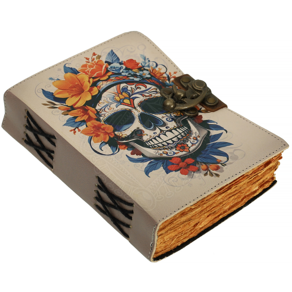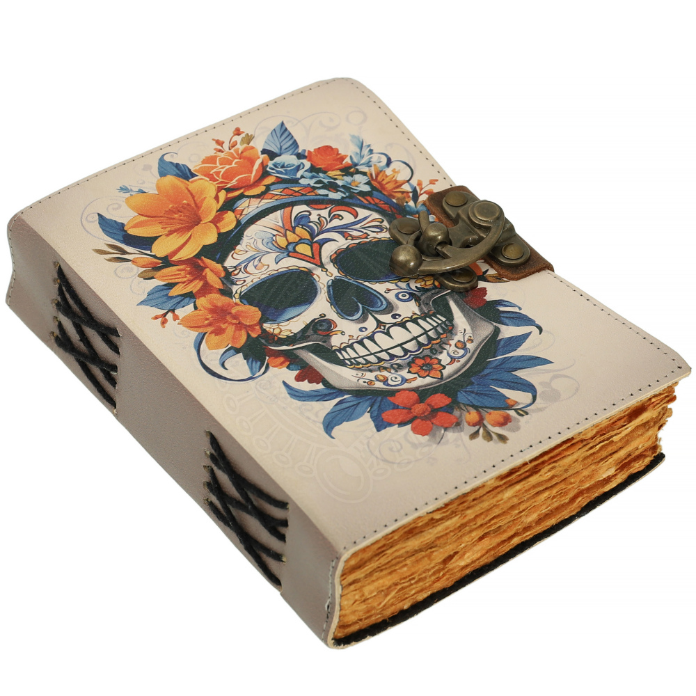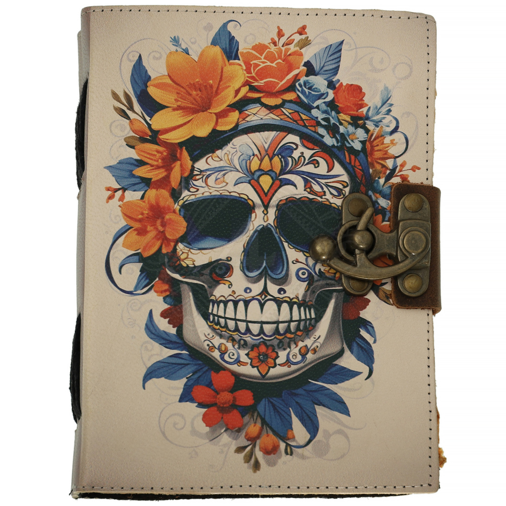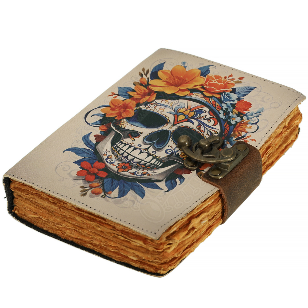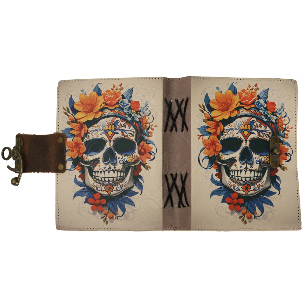 Handmade Leather Notebook Dia de los Muertos Skull - Outlet