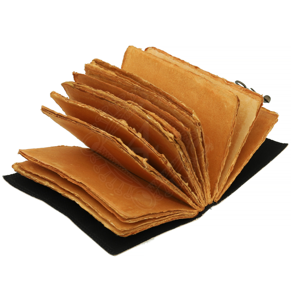 This vintage notebook contains 200 pages (100 sheets) of unlined paper. The paper is handmade from recycled paper and pure cotton, giving it the texture of jute and linen. This paper is acid-free. You can write on this unlined paper with a ballpoint pen or pencil, or draw with crayons and acrylic paints. Ink pens, watercolours, etc. may bleed on this paper. The notebook cover is made of genuine, full-grain buffalo leather, which is produced using organic, vegetable agents. The inside of the leather covers are coated with a polyester fabric to protect the paper.