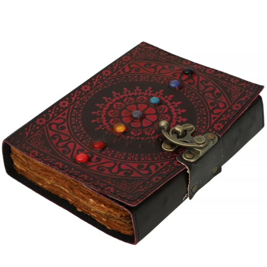 The embossing on the cover of this leather book was done by hand with small embossing stamps. A solid handmade paper stitching can be seen on the spine of the book. It is made of high-quality, acid-free cotton paper that is best for designing, taking notes or writing diaries. This dark brown leather-bound notebook is an original gift for a birthday, anniversary, Valentine's Day, graduation, engagement or wedding. Further product information ...