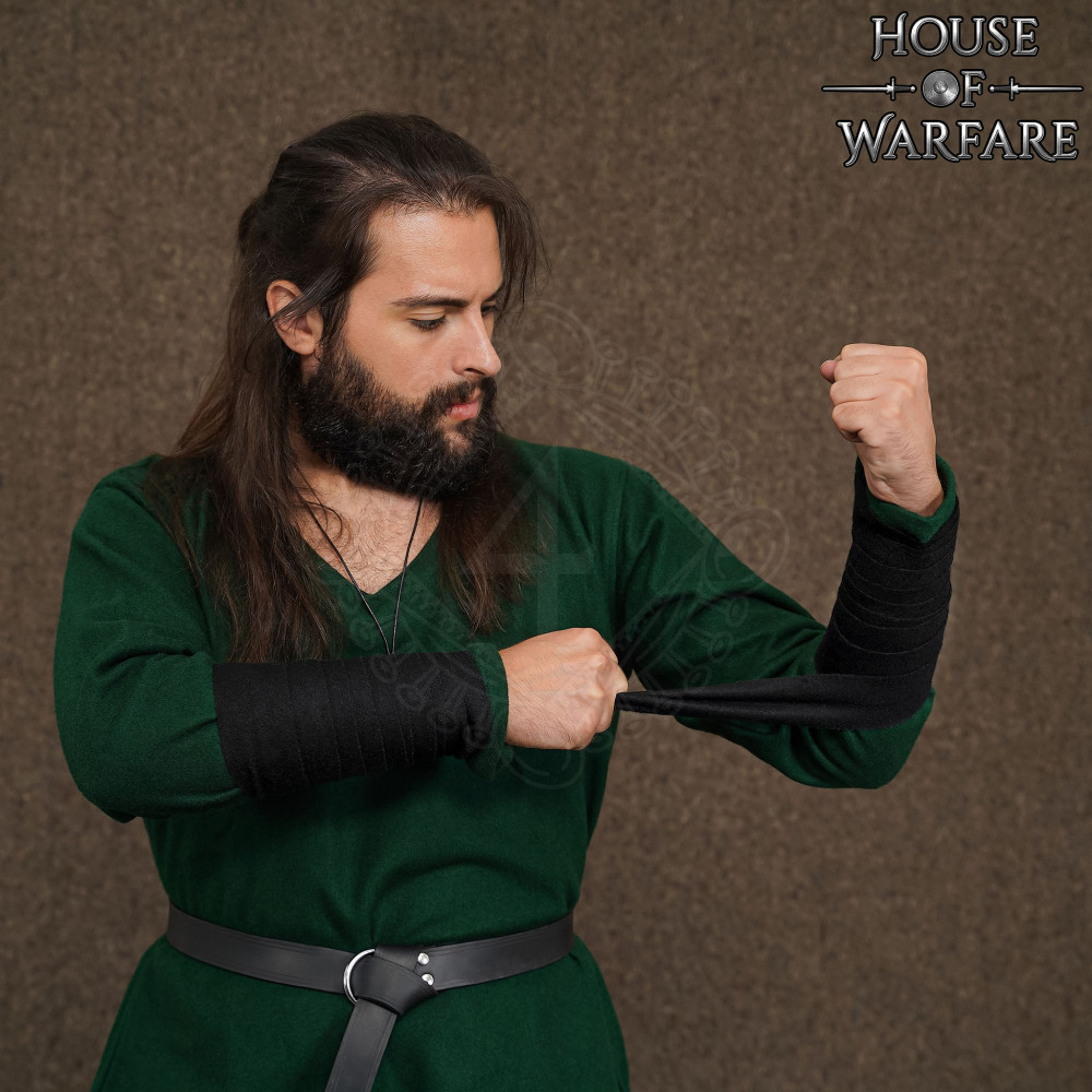 - Crafted from robust, HIGH-QUALITY wool, you get these in BLACK, BROWN, GREEN, GREY, AND MAROON and are available in one size to fit most (254cm long and 5cm wide). And guess what, you can also complement these pairs with their matching Viking Leg Wraps, (not included)! EACH PAIR OF THESE ARM WRAPS CAN ALSO BE USED AS LEG WRAPS FOR YOUR YOUNGER ONES. For enhanced convenience, make sure you pair these with our small Medieval Pennanular Fibula, not included.