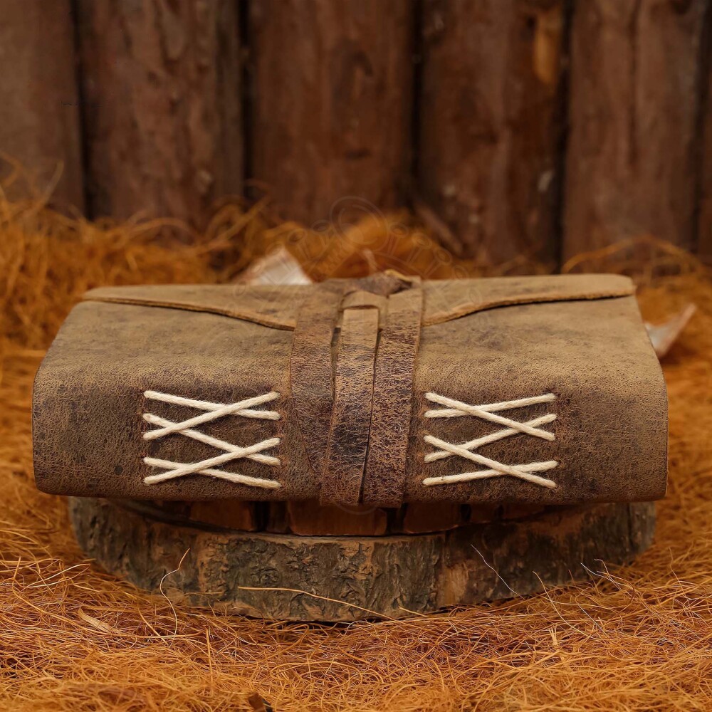 Hand-Bound Leather Journal with Strap, Rustic Brown