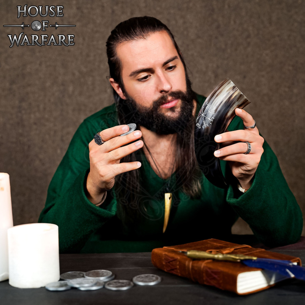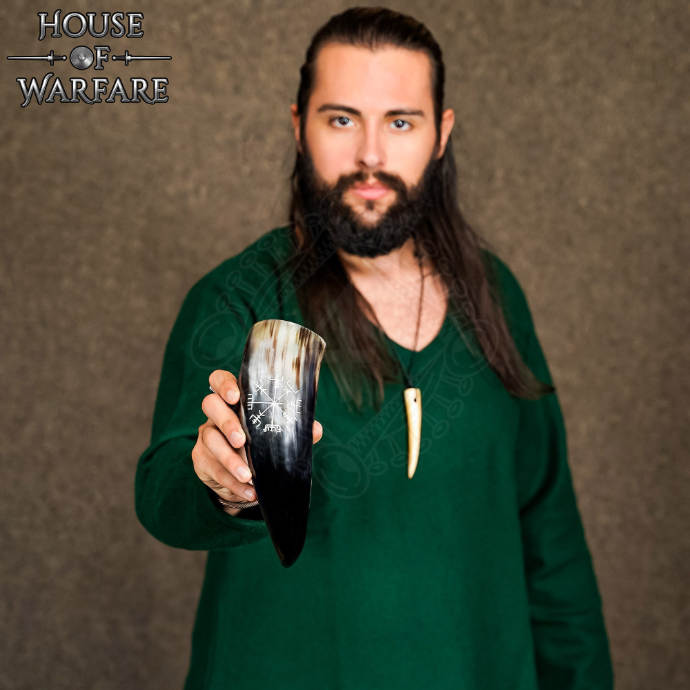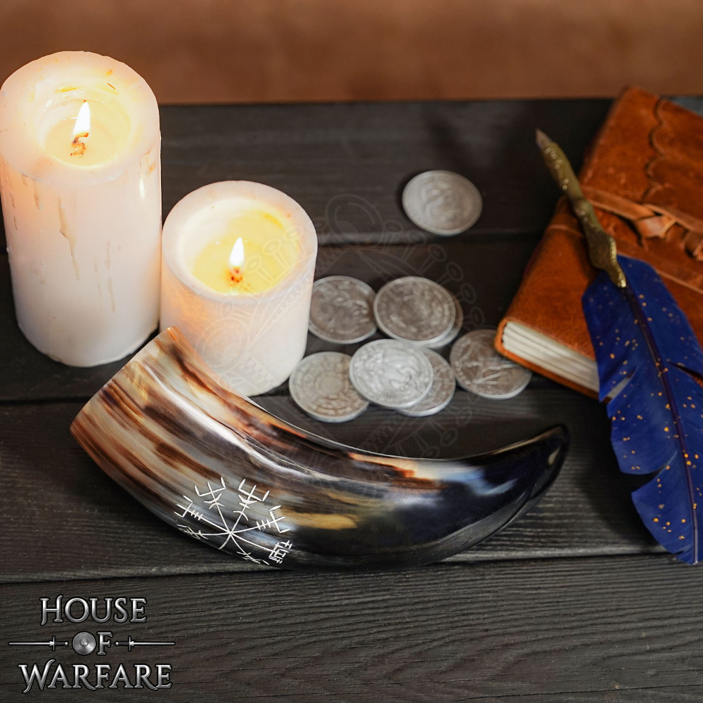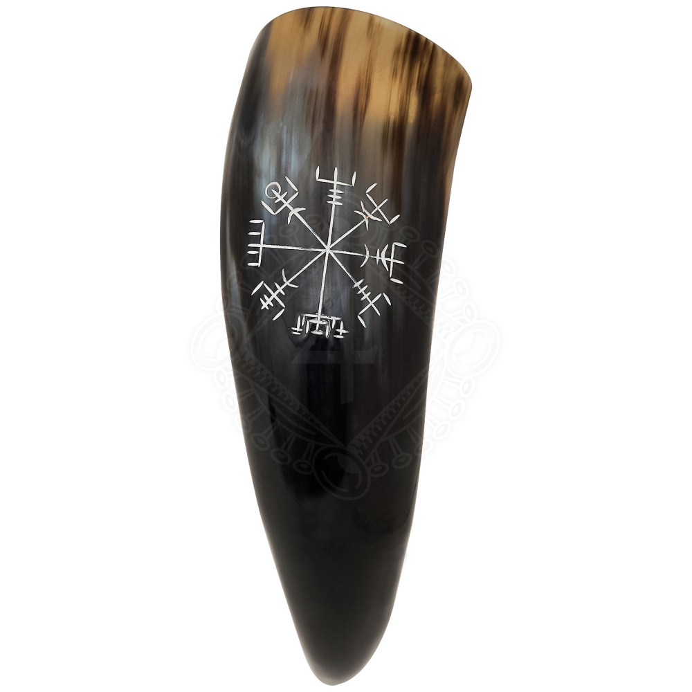 Drinking Horn 300ml with Hand Engraved Vegvísir