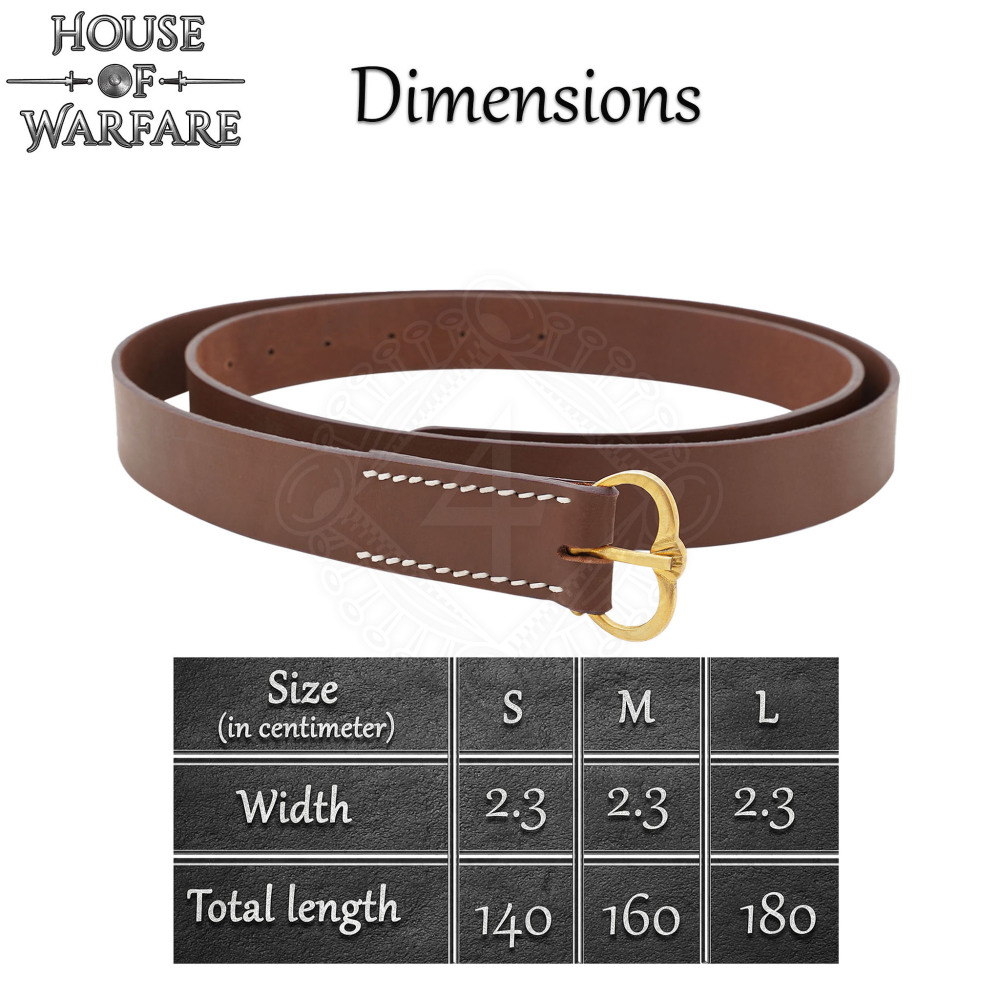 Complete your historical costume with a truly authentic and high-quality accessory. This simple yet robust "Santiago" leather belt is crafted from premium brown leather with a thickness of approximately 3.3 mm, making it the ideal choice for reenactment, LARP, or as a stylish element of your Gothic attire. Its 30 mm width and distinctive light-coloured stitching near the authentic brass buckle guarantee both durability and a period-accurate look inspired by the 14th and 15th centuries. Thanks to specially treated edges, the belt is protected against unwanted fraying. Further product information ...