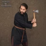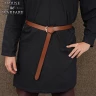 In the Middle Ages, long belts were worn with a special touch. The key to an authentic look is the historical knot. After passing the belt through the buckle and tightening it at your waist, take the long, free end, wrap it from underneath around the tightened part of the belt just behind the buckle, and then let it hang down through the loop you've just created. This knot not only looks period-correct but also securely fastens the loose end, so it doesn't get in your way while walking, working, or in battle.