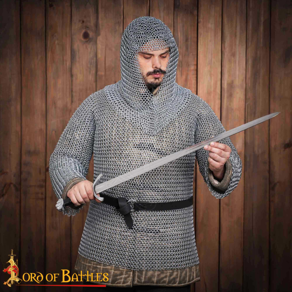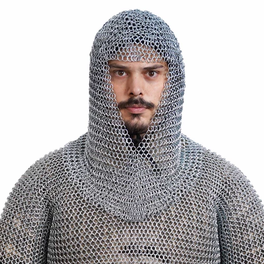 Short chain mail coif, 16 Gauge butted rings, zinc-plated