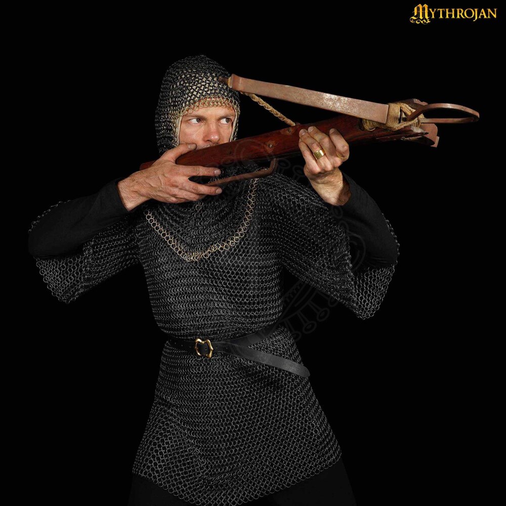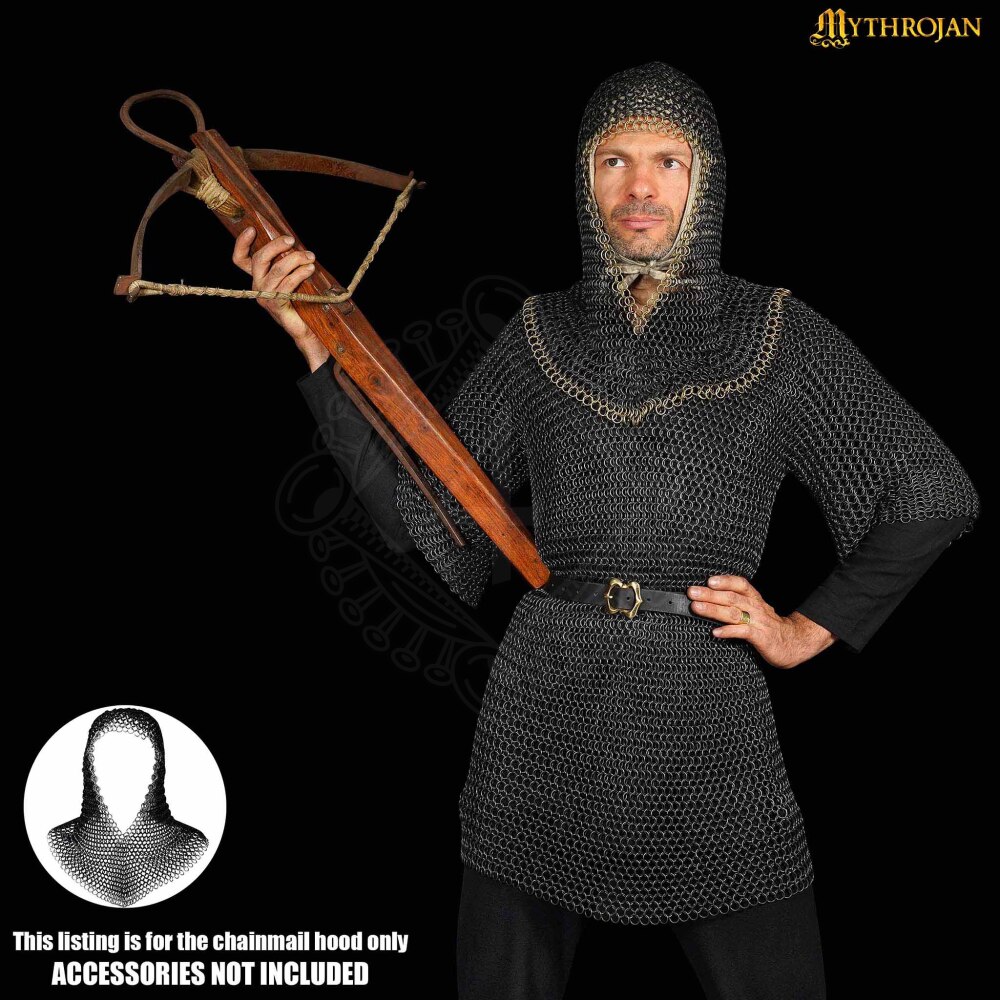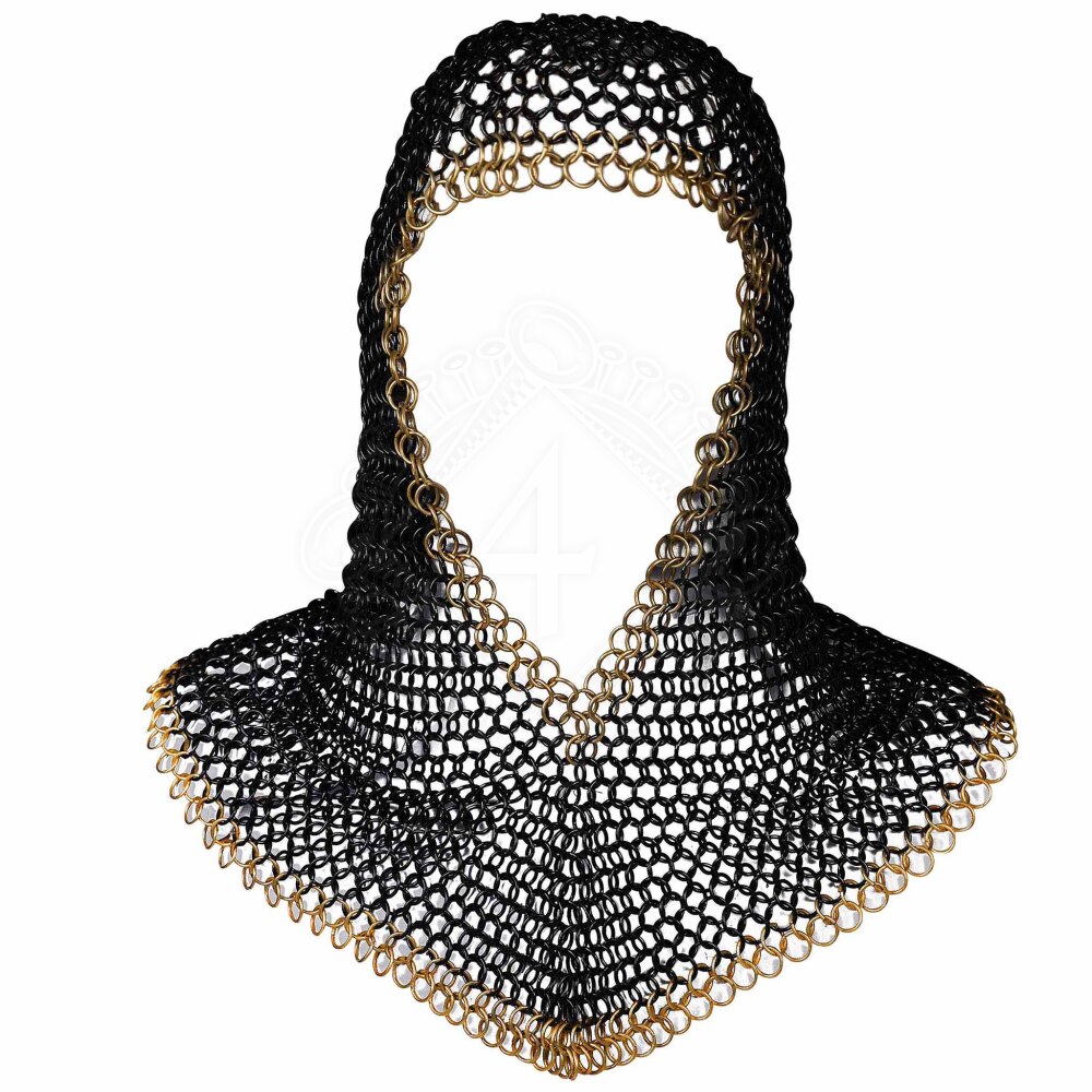 Immerse yourself in the medieval world with this high-quality chainmail coif from Mythrojan. Crafted from blackened mild steel rings and adorned with brass edgings, this coif offers you not only an authentic look but also functional protection. The 10mm diameter rings are carefully hand-closed (butted), ensuring solid quality at an affordable price. The ideal choice for all enthusiasts of history, LARP, and Cosplay. Further product information ...