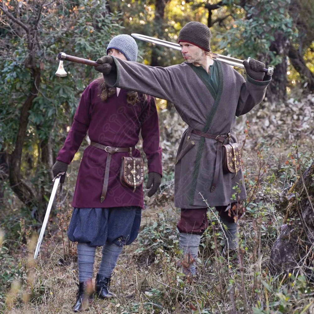 This coat, known as a Klappenrock, represents a type of outer garment worn by high-status men—jarls, nobles, and wealthy merchants—throughout Northern and Eastern Europe during the Viking Age. Its design is based on archaeological finds and pictorial evidence from the 8th to 11th centuries, particularly from centres like Hedeby and Birka.