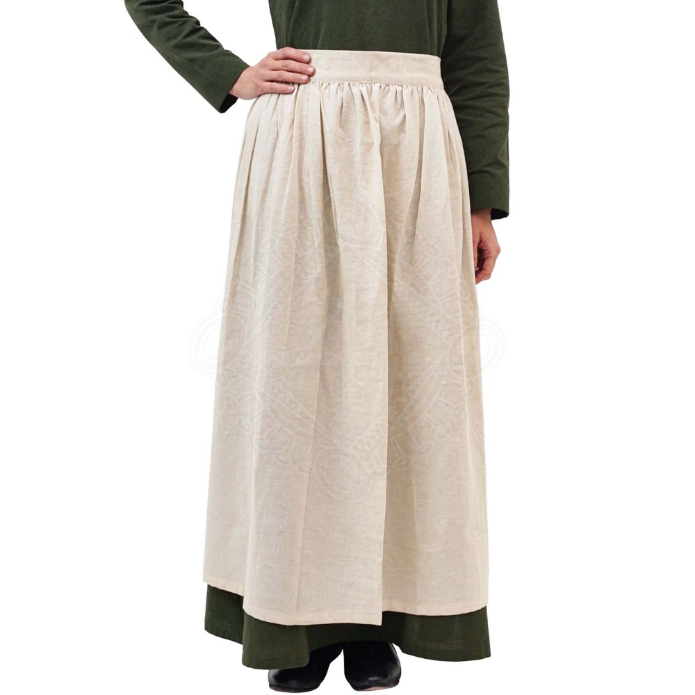 Whether you're making a fire, cooking dinner in camp, processing herbs, engaging in pottery, or pursuing other crafts at a historical event, this apron is the ideal solution to protect your costume. It's excellently suited for LARP characters such as cooks, peasant women, tavern maids, or craftswomen, as well as for reenactors of the High and Late Middle Ages (especially the 14th and 15th centuries). You will appreciate its versatility and practicality during any manual activity in a historical setting.