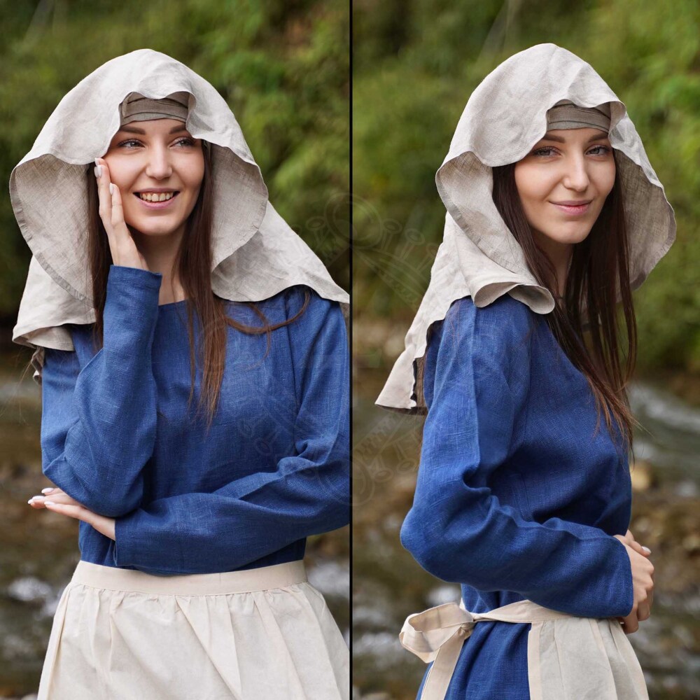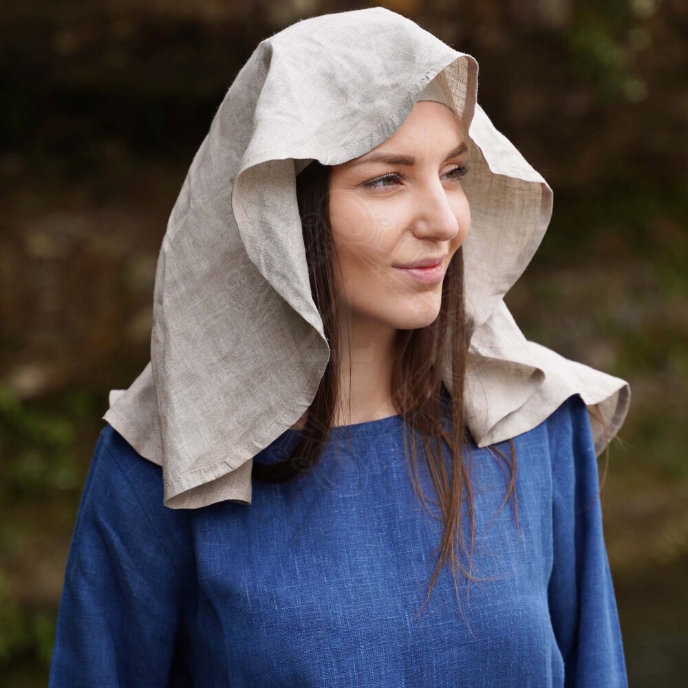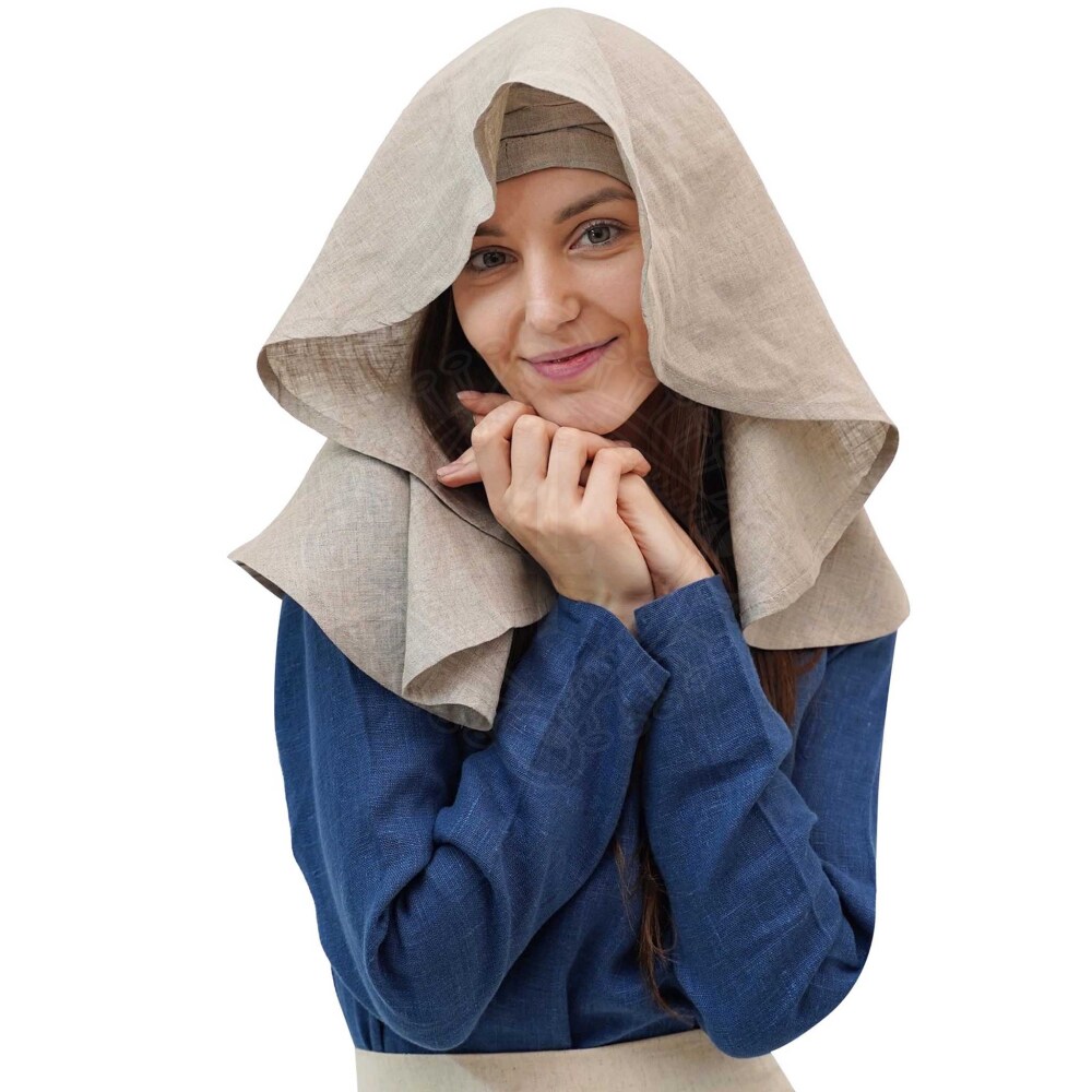 No High Medieval woman's costume is truly complete without a proper head covering. Whether you are portraying a pious nun, a respectable townswoman, a hardworking peasant, or a noble lady, this oval linen veil is the finishing touch to your historical attire. In the Middle Ages, loose, uncovered hair was the privilege of unmarried girls; for a married woman, the veil was a symbol of status, modesty, and protection. Further product information ...