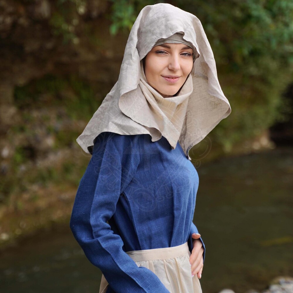 Looking for that final, subtle detail that transforms your costume into a believable historical persona? You have just found it. This half-moon shaped linen wimple is an incredibly versatile accessory for women portraying the 12th to 15th centuries. Whether you are a noble lady, a townswoman, or a simple peasant, a covered head and neck were symbols of propriety and social status in the Middle Ages. The Agnes wimple allows you to experiment with different styles and adds necessary authenticity to your appearance without burdening you with excess fabric. Further product information ...