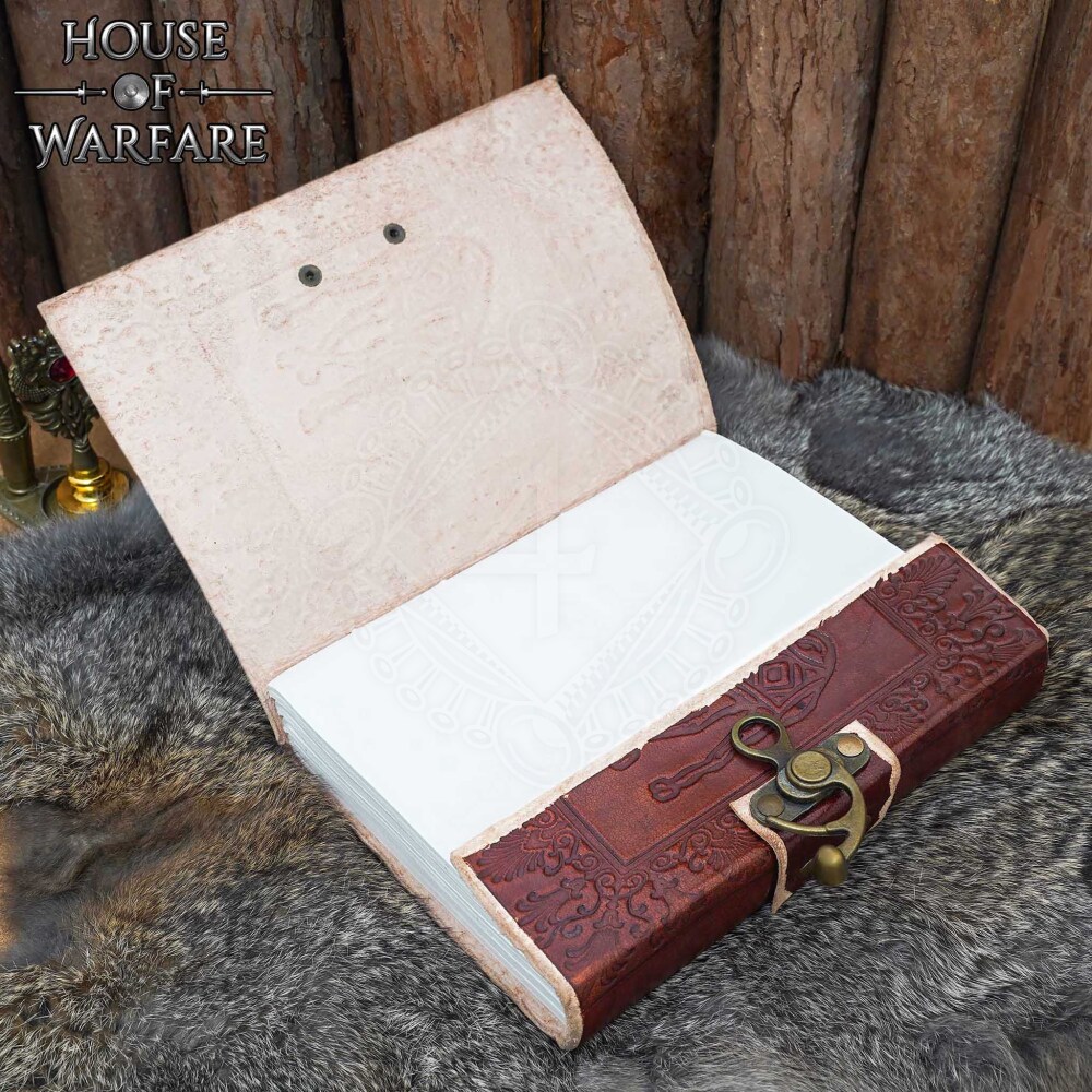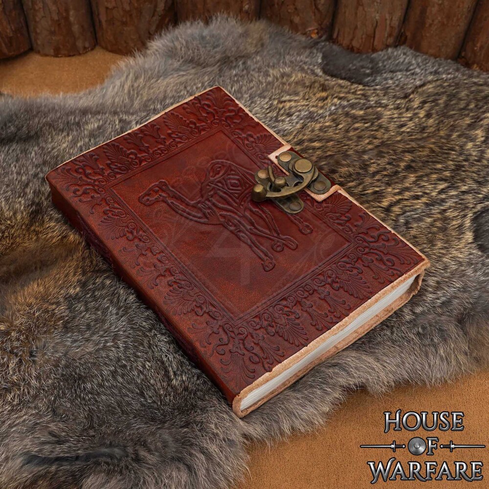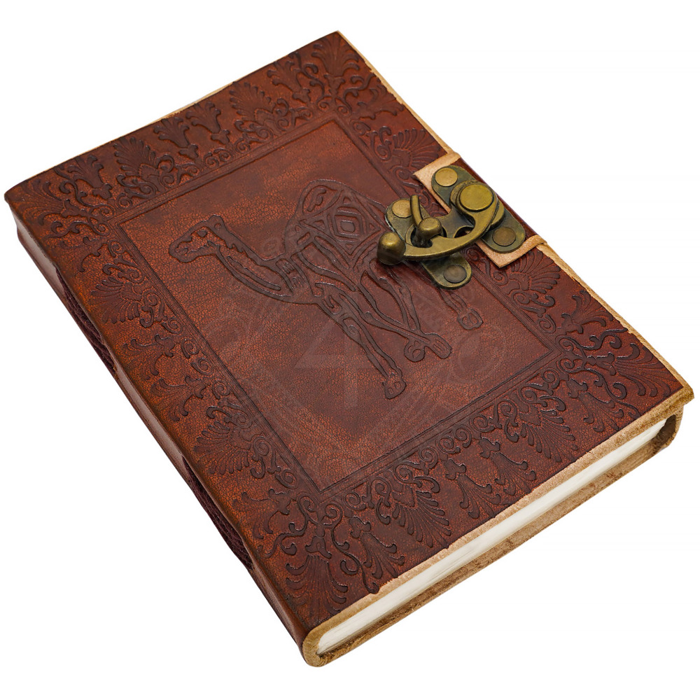 Leather Diary with Embossed Camel in Floral Frame and Clasp Closure