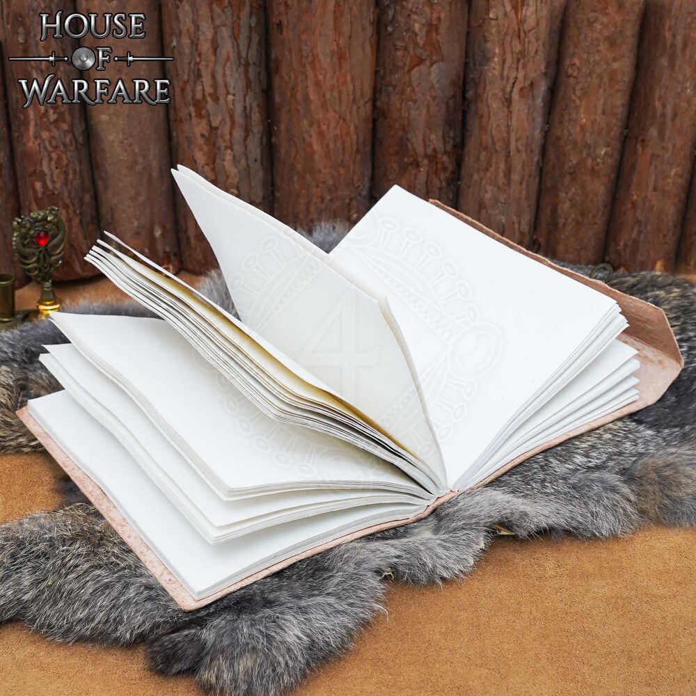 Around the edges of the panels is another decorative band, this time with a motif of stylized waves. This motif adds dynamism to the notebook while emphasizing its handmade nature.
