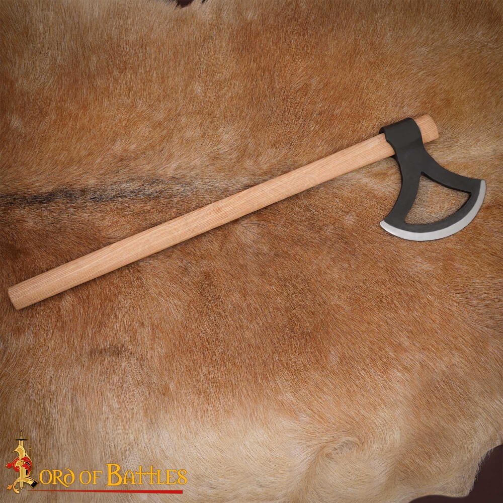 Dane axes were popular for their versatility. They were used both for combat and for everyday tasks such as felling trees or carpentry. They are characterised by a wide blade with a curved shape, reminiscent of a beard, and a relatively long haft.