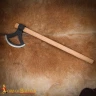 This is a replica of a Viking axe, specifically of a type called a "Dane axe" or "bearded axe". Originals of these axes date back to the Viking expansion period, roughly from the 8th to the 11th century AD. As for the place of origin, Viking axes were used throughout Scandinavia and the areas that the Vikings occupied, including the British Isles, Ireland, Iceland, Greenland, and even North America. Further product information ...