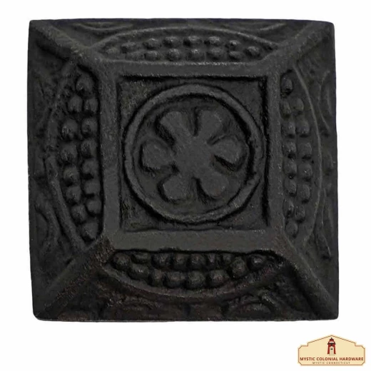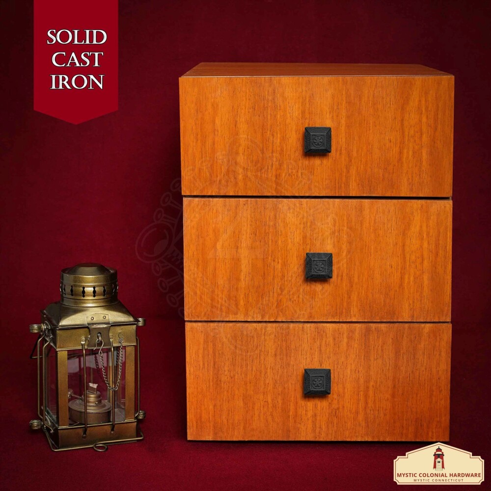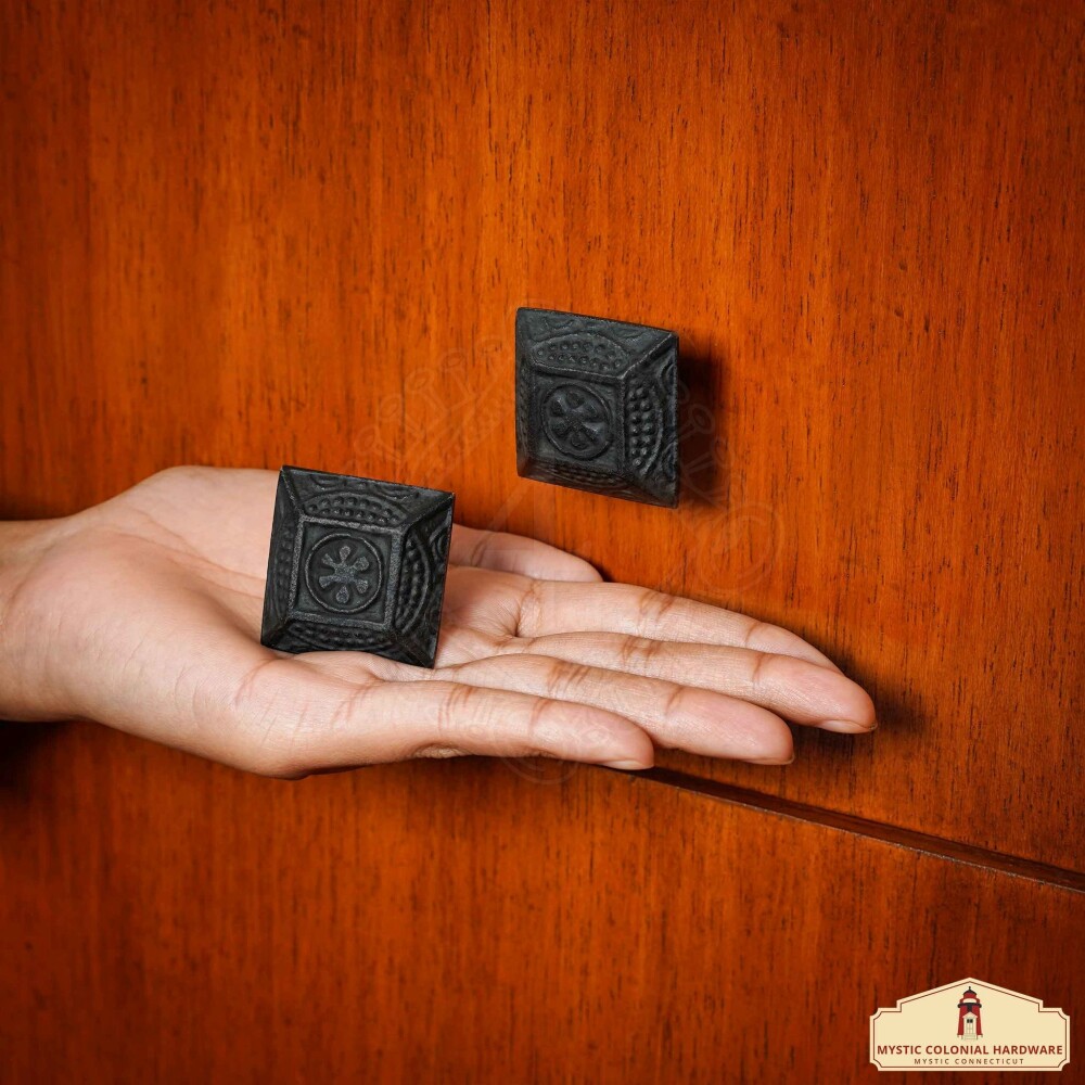 Rustic Cast Iron Cabinet Knob - Square Floral, 1.3"