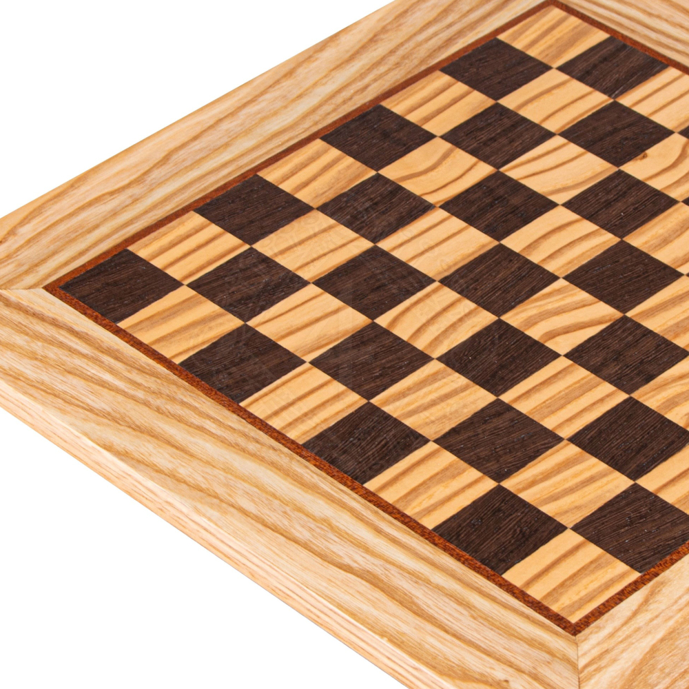 - Crafted in our workshop in Greece, using quality Olive Wood and Wenge veneer, this board would compliment any modern household interior. This veneered Chessboard is 15mm thick and has a satin finish. It is ideal for king's height 9.5cm.
