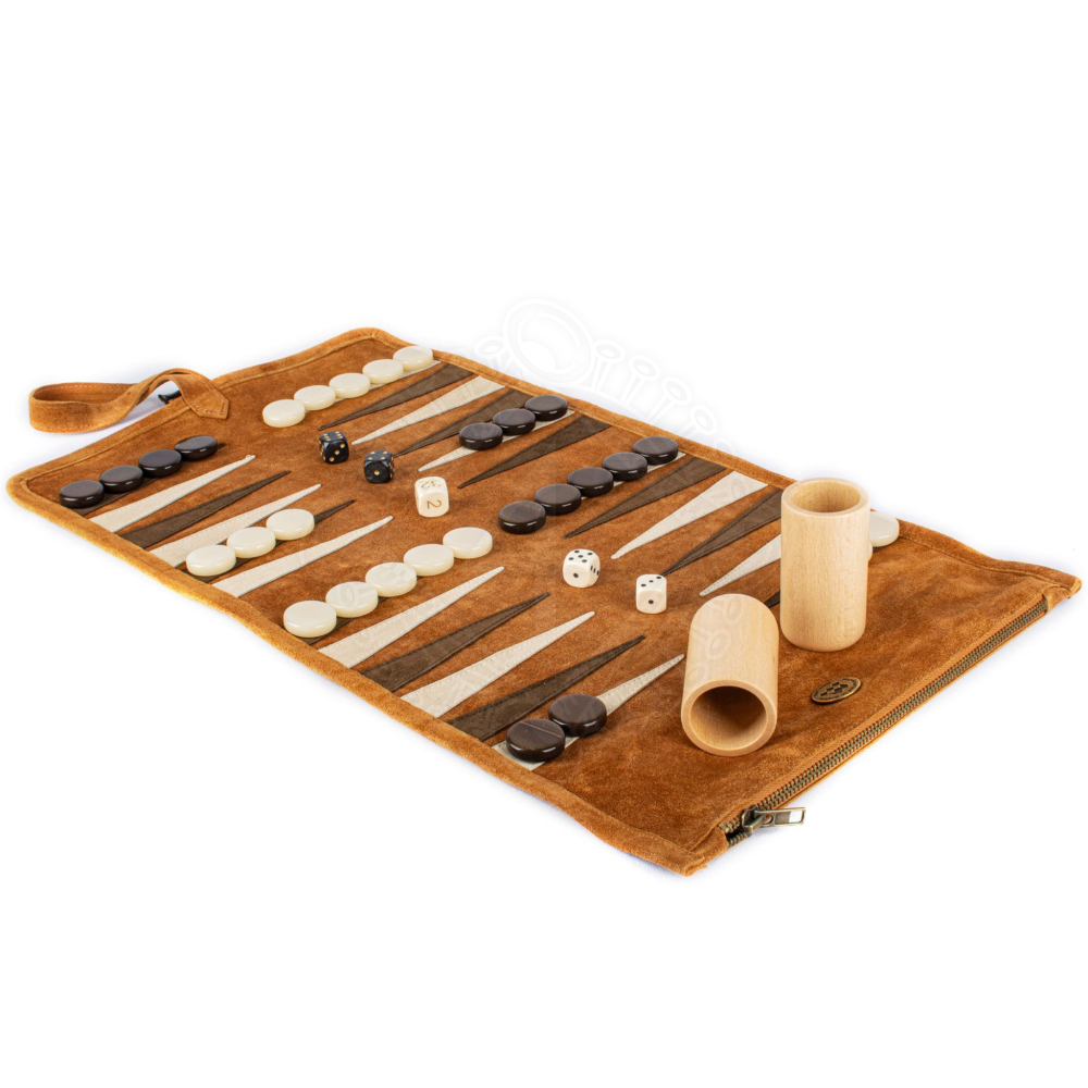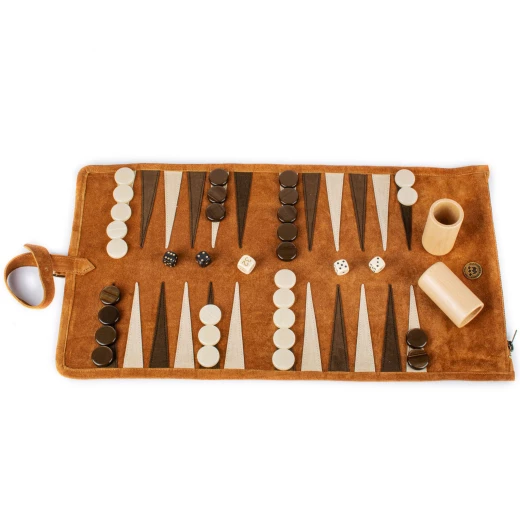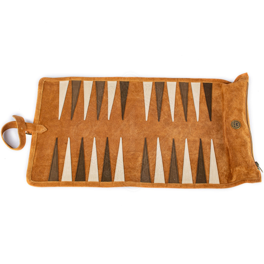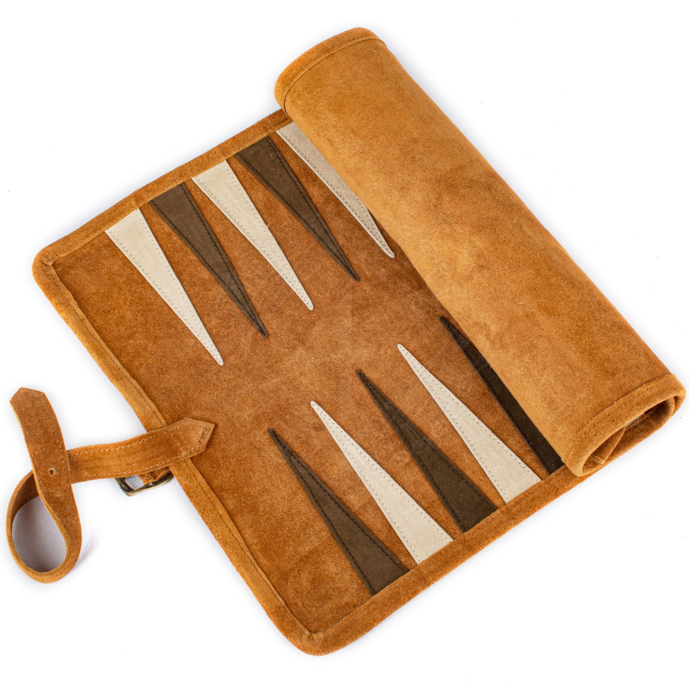 Premium Handcrafted Cinnamon Brown Suede Roll-Up Backgammon Set