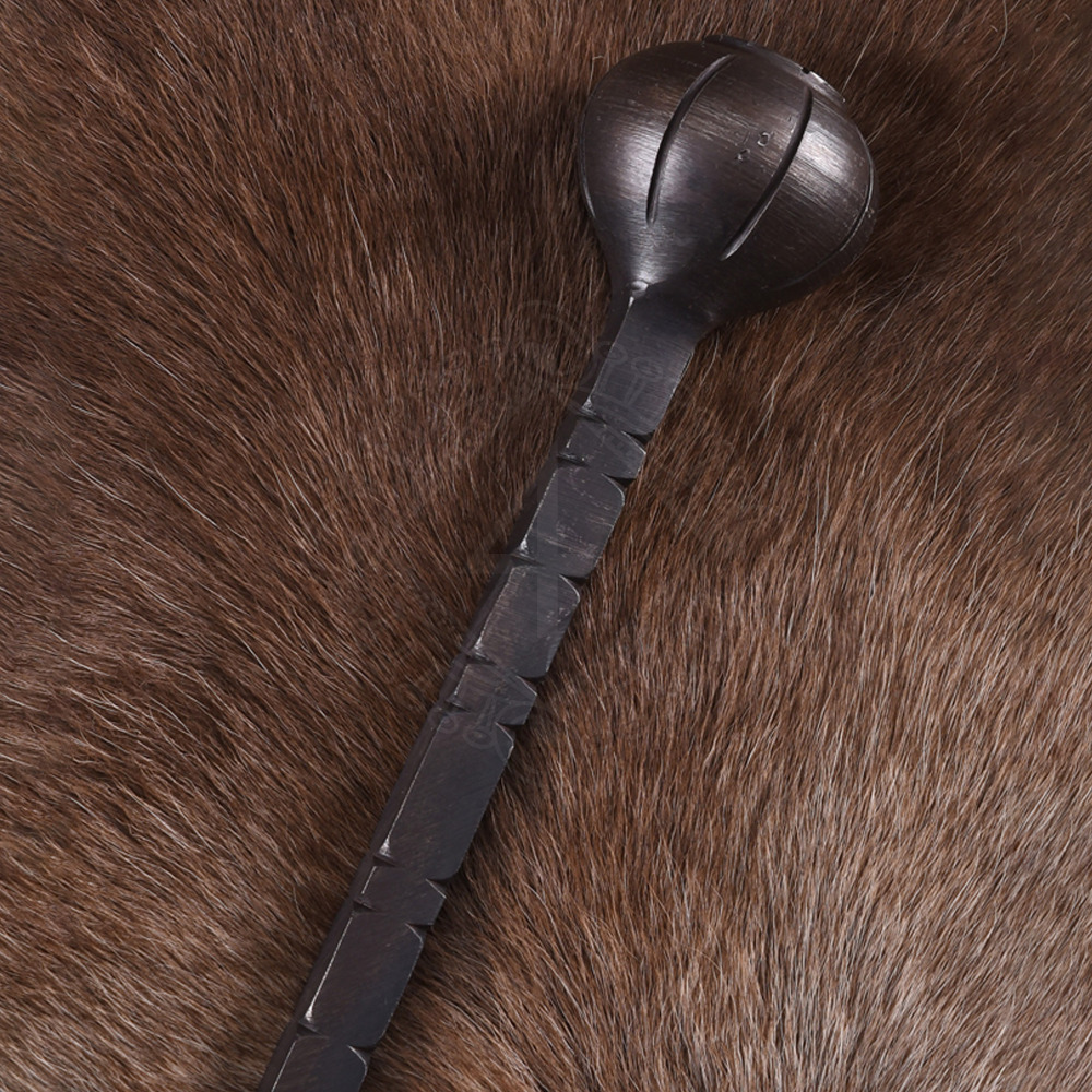 This simple, sturdy mace with a square haft and a ridged ball- / bulb-shaped head is inspired by historical 16th / 17th c. examples. It is forged out of high carbon steel and equipped with a stitched leather grip and a leather wrist-retention strap. Further product information ...
