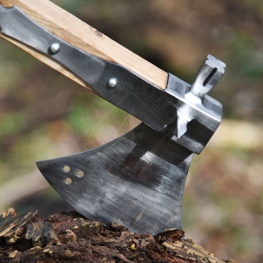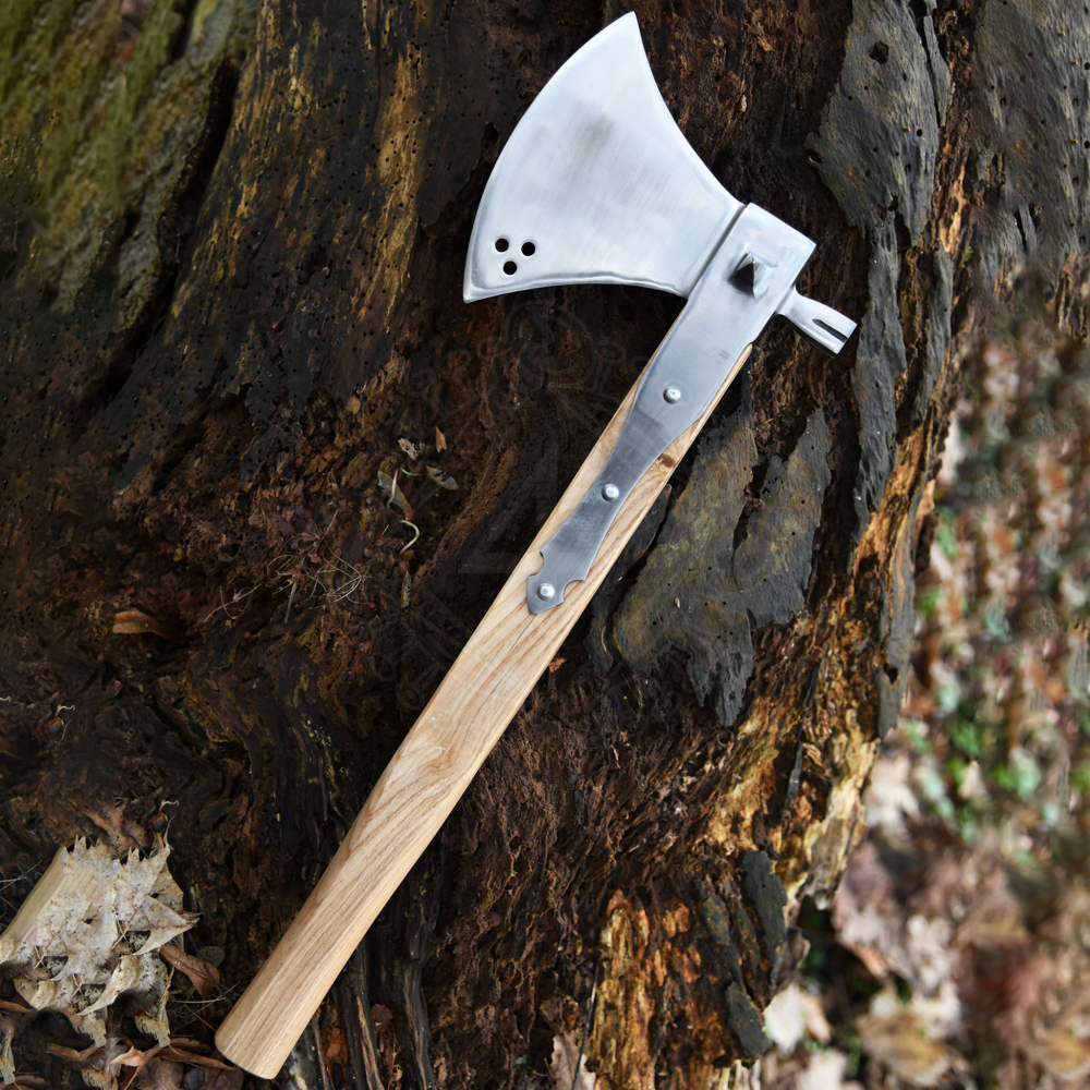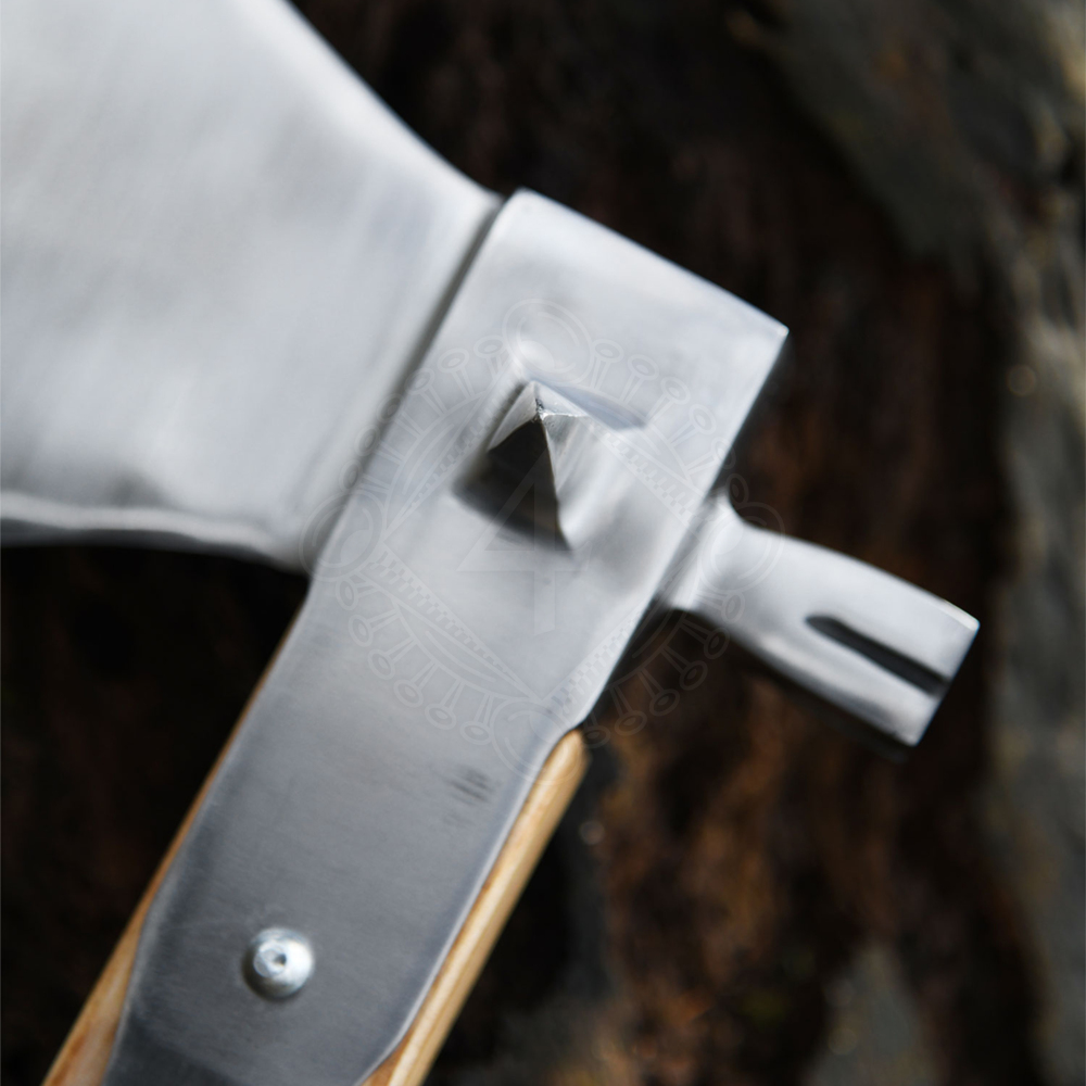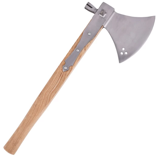 Brutal battle axe from the 16th century with hammer at the back. There is a pointed thorn on each side. This battle axe is very robust and solidly manufactured. Further product information ...