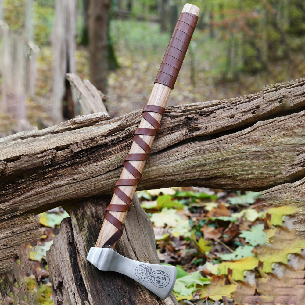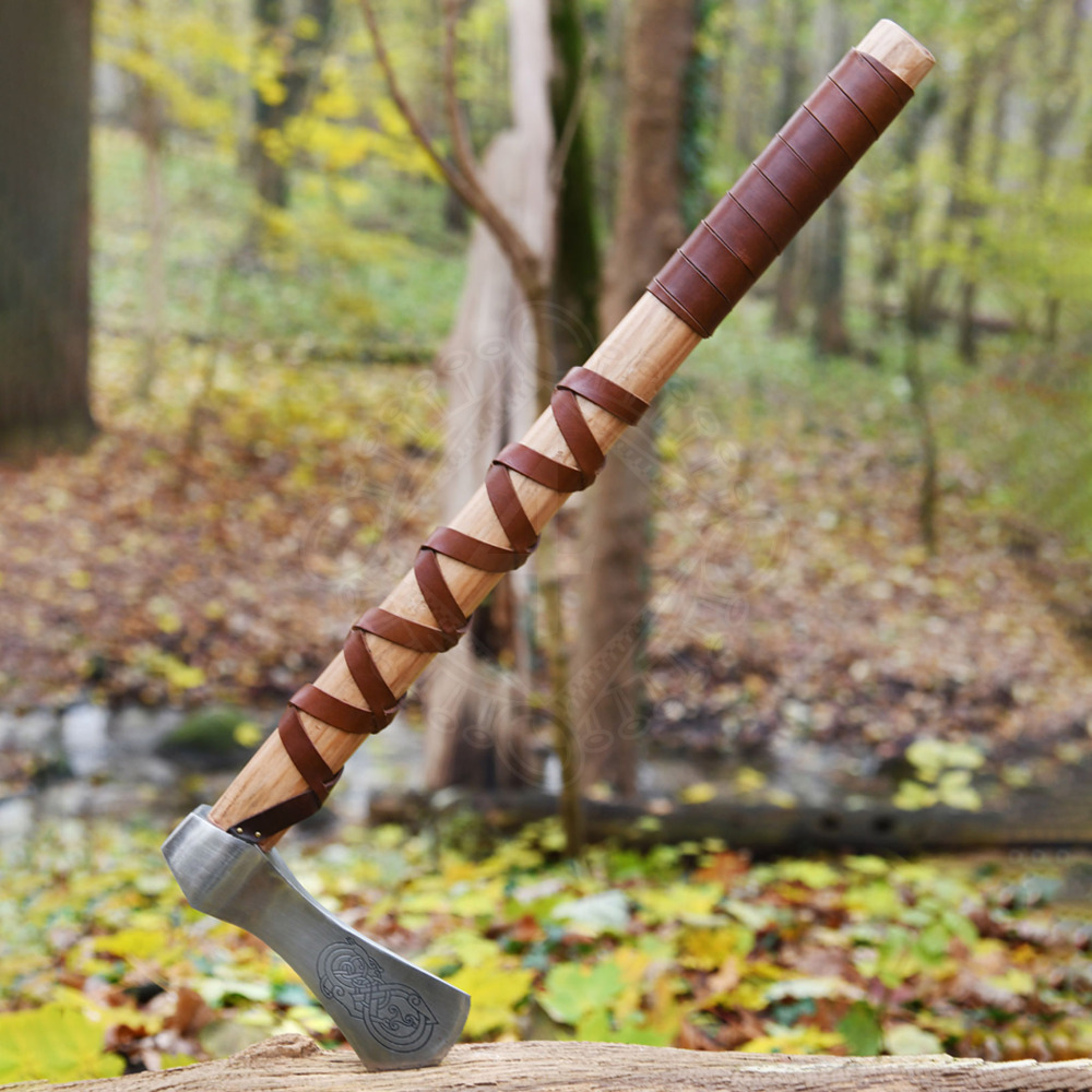 Viking Axe, Cast Steel, Type A, with Engraving and Leather Wrap