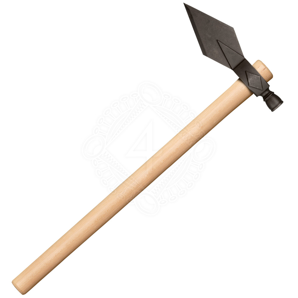 While most tomahawks are chopping tools, there was a less popular alternative known as a spontoon hawk. Made with a blade expressly designed for piercing, it was capable of delivering deep puncture wounds that were quite lethal. Often found with a sloping or diamond shaped point and sharpened on both sides, the spontoon hawk offered little to no utility value but was undeniable a fearsome and brutally effective weapon. Today, modern made spontoon hawks are extremely rare (outside of the cheapest quality imports), so Cold Steel® decided to remedy the situation with own models. Available in faux pipe hawk style, they feature classic sloping and diamond shaped blades that can be fully sharpened!