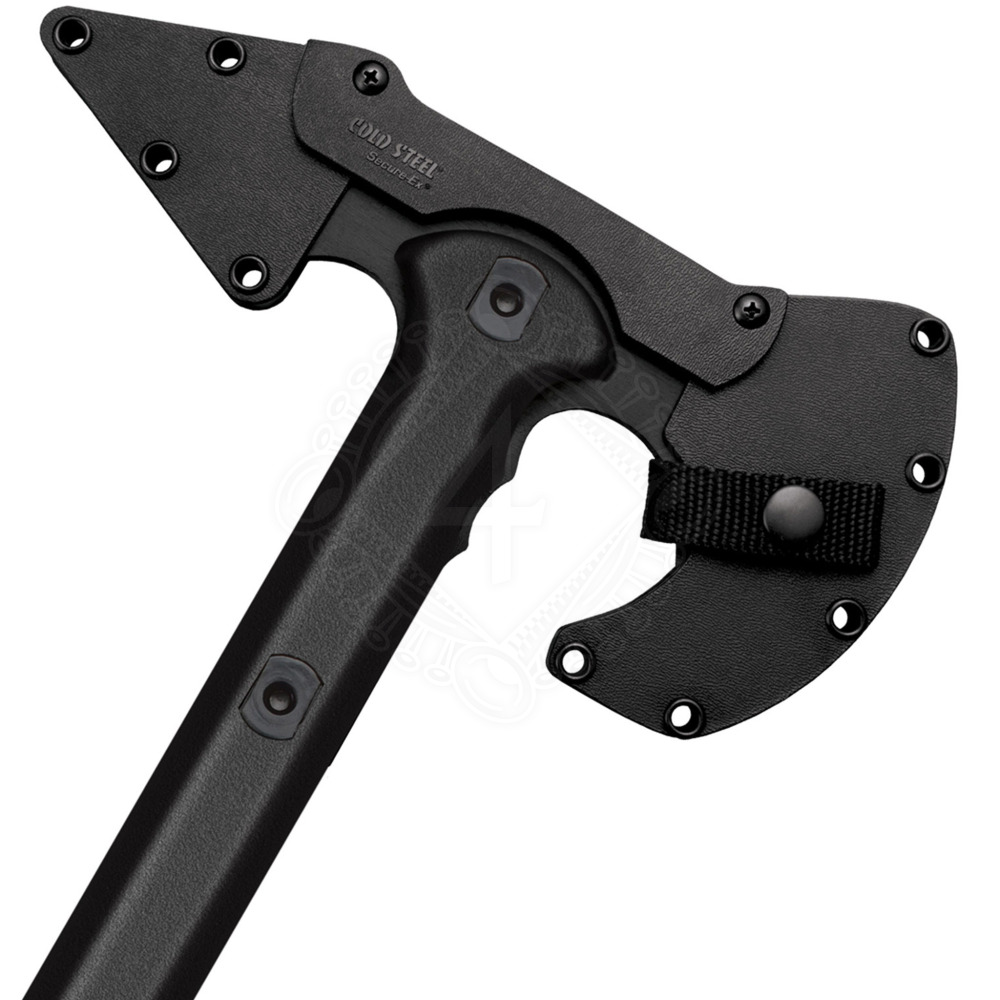 A patented, articulated Secure-Ex® sheath is included. This clever design securely covers both sharp parts of the head, allowing for comfortable and safe carry of the tomahawk.