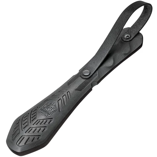 The night watchman has an inch thick, solid TPR rubber construction to give it a 6.25 oz. weight. It features a molded texture and the handle has a molded no-slip grip and a leather wrist strap for better control. Further product information ...