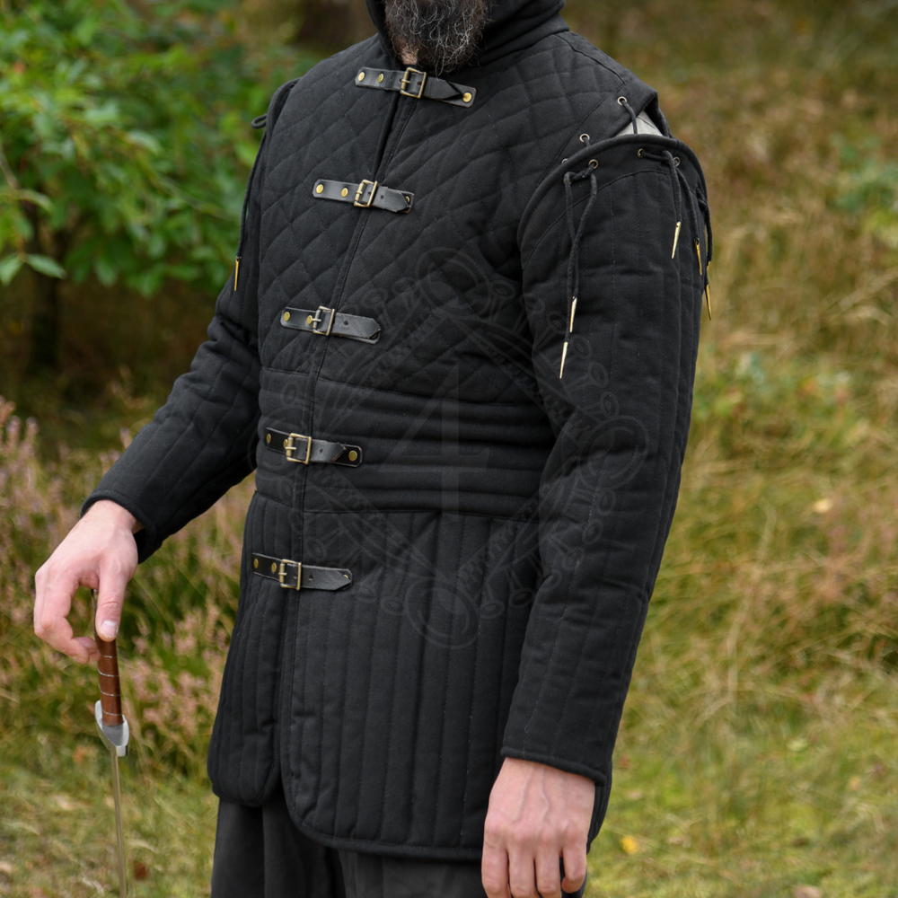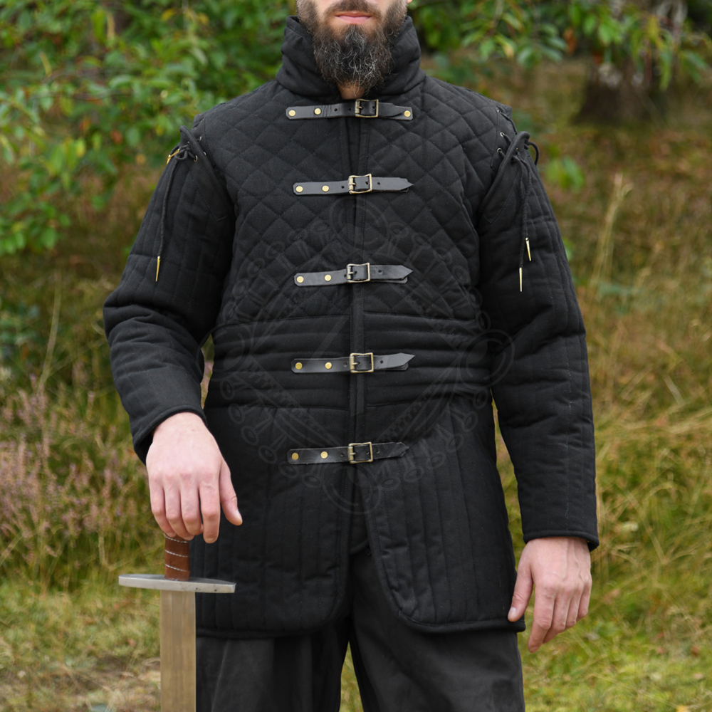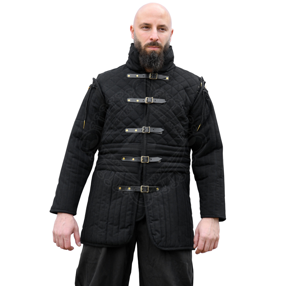 Long Gambeson with Buckles and Detachable Sleeves, black