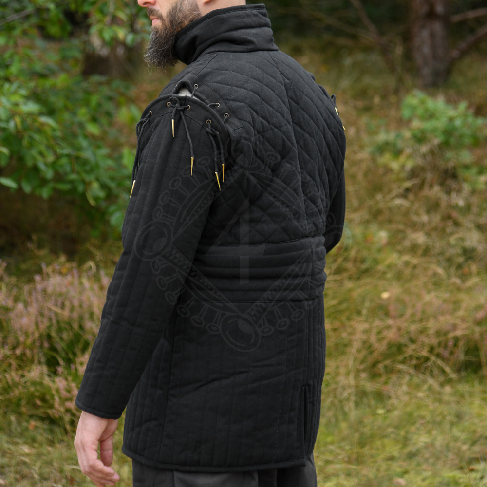 Gambeson is almost essential for showing off and free fighting. Gambeson, also known as gambison, armour or aceton, was worn under plate and ring armour in the Middle Ages. It made steel armour more comfortable to wear and could also cushion the enemy's blows, reducing the risk of injury.