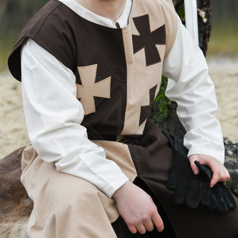 The varkoch (also known as the battle cloth) appeared in the 12th century and was worn by knights over armour or chain mail. It protected the wearer from the sun's rays on the battlefield, and the different colour combinations made it clear who was friend and foe in the heat of battle. The varkoche was worn by many crusaders to identify themselves as crusaders.