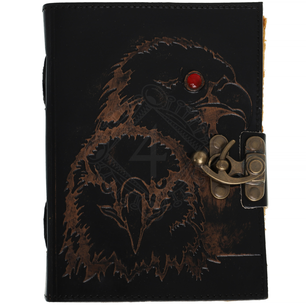 - The intense gaze with a red accent: the eye of the top eagle is highlighted with a red acrylic stone, which makes the journal notebook sparkle and symbolises clear vision and foresight.