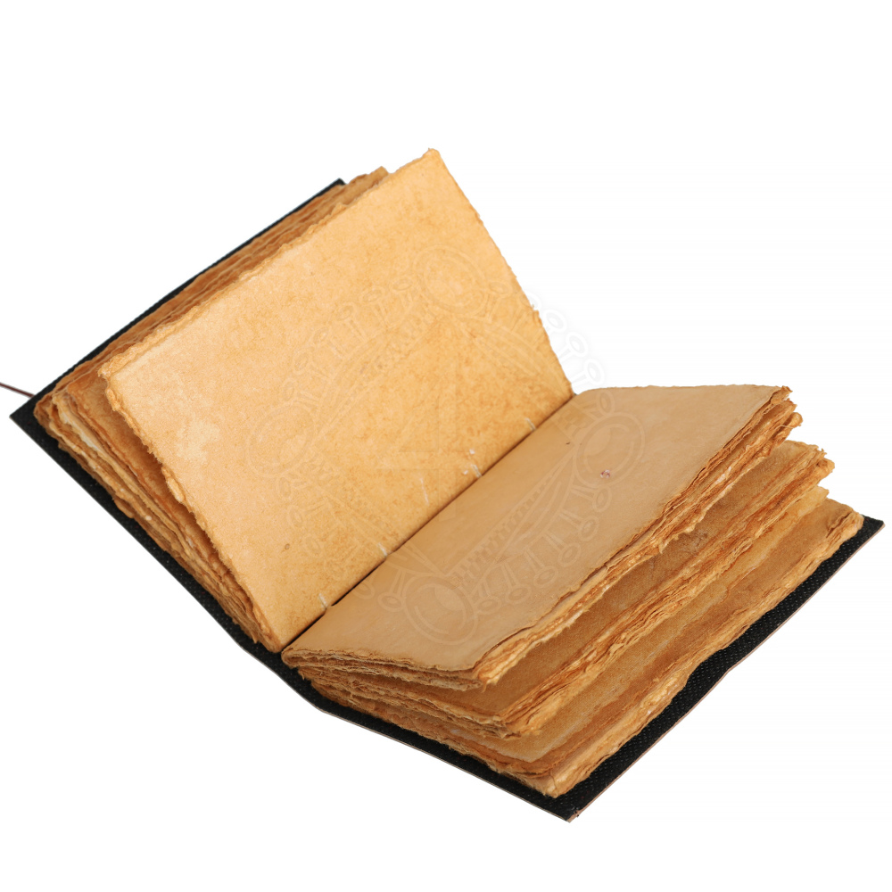 Inside: The journal notebook consists of a thick block of rough paper pages with a yellowish sheen that gives the pages an antique look. The pages are bound in the traditional way so that you can write and draw comfortably.