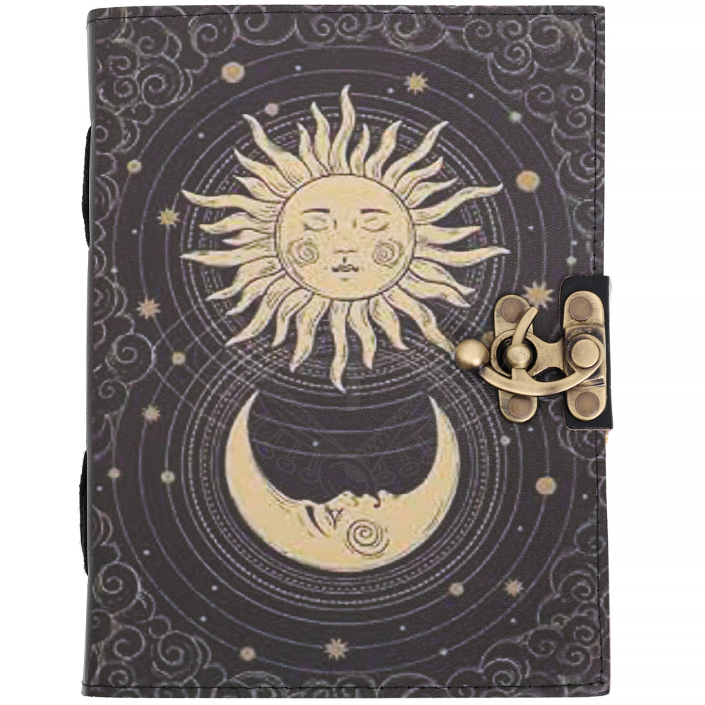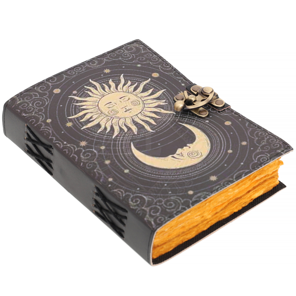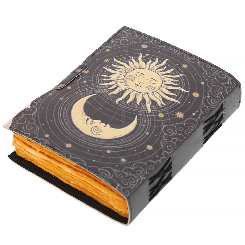 Celestial Sun and Moon Leather Grimoire with Handmade Paper