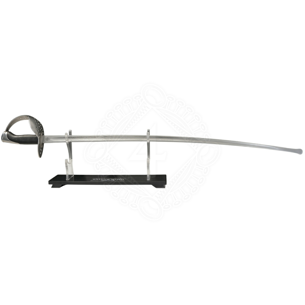 The inspiration for this weapon stems from British and Italian military training sabers of the late 19th century. During this era, fencing masters like Alfred Hutton adapted battlefield techniques for sport and gymnasium use. Hutton’s influence on the development of saber fencing as a technical discipline deeply informed the design of this replica. Sabers of this type were used in military academies across Europe to simulate real combat with minimal risk of injury, utilizing blunt edges and flexible blades to prepare officers for the dueling ground or the battlefield.