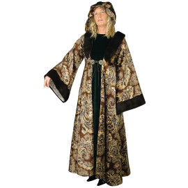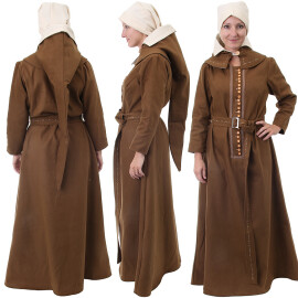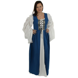 This period farmwife dress is in High Gothic style. It consists of a combination of lower cotte and upper surcot. Surcot has lacing on both sides, is sleeveless and extends to the ground. Cotte has long wide sleeves ended with cuffs and lacing by the neck. Our Period farmwife dress is complemented by cap. Further product information ...