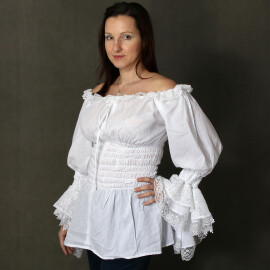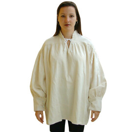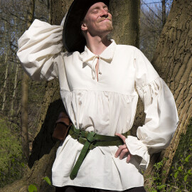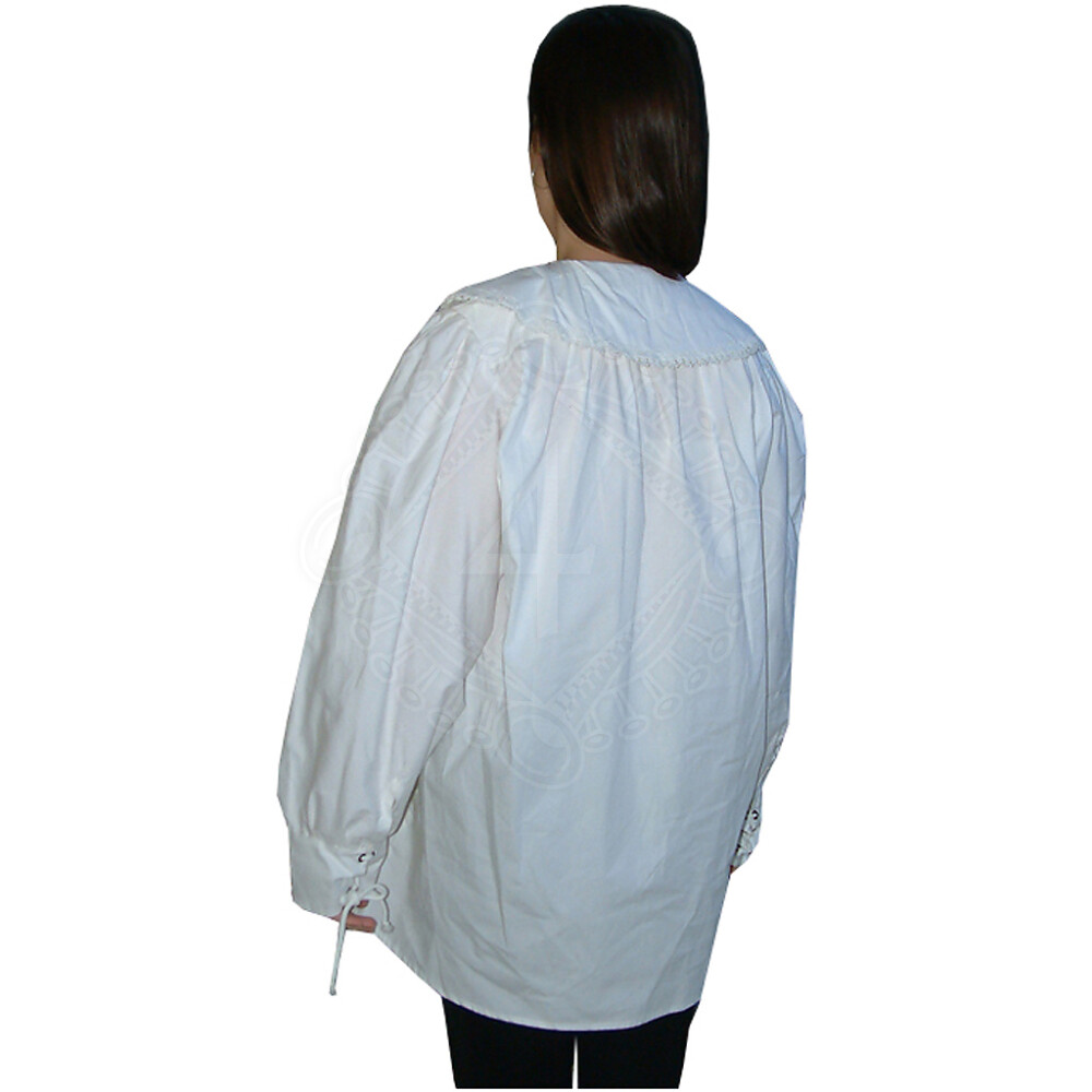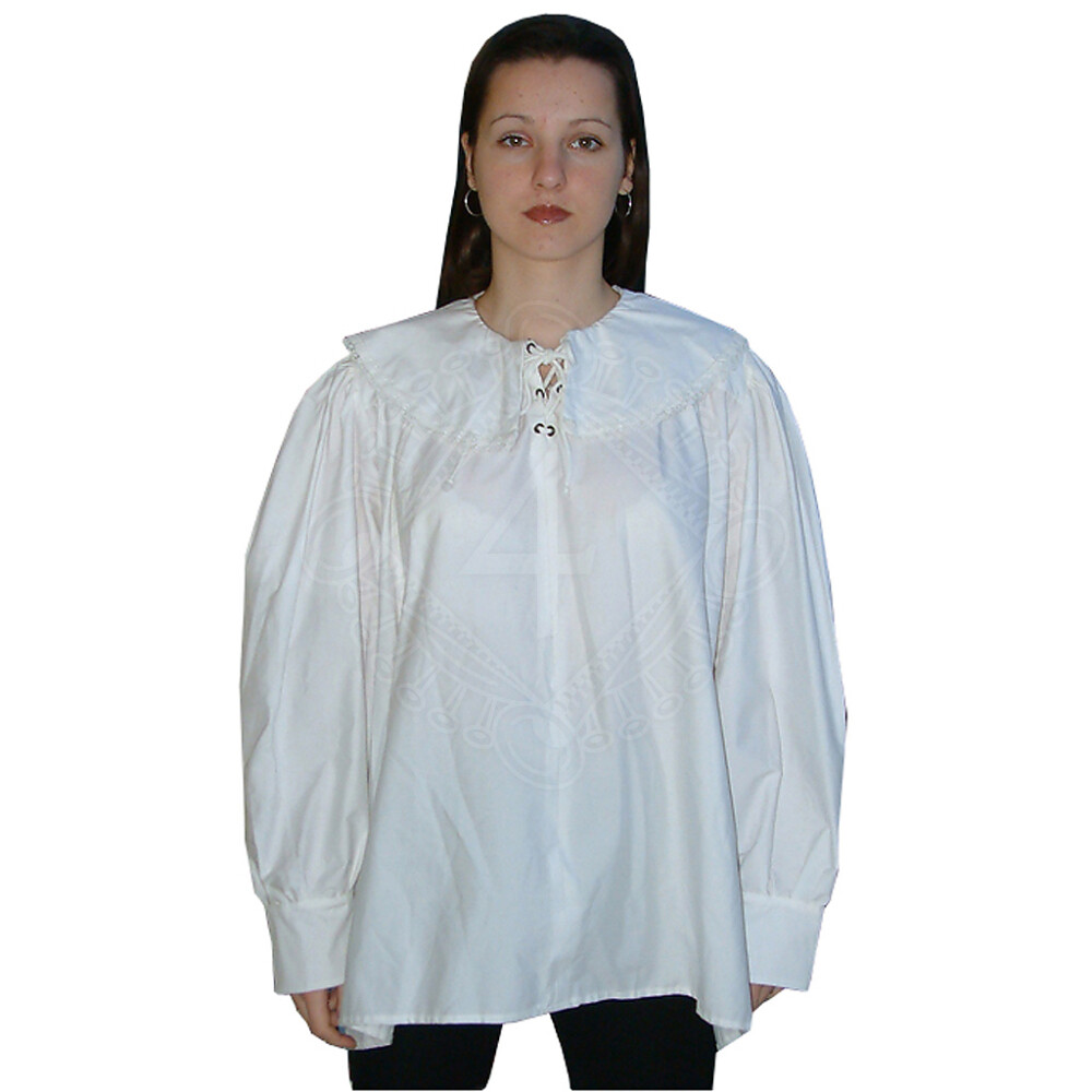 This renaissance shirt has a large collar trimmed with lace. Below the neck is a lacing in front with lace, thanks to it, shirt can be unbuttoned. Sleeve cap is richly emblazoned. Cuffed sleeves are ended with the lacing bar. The shirt was worn in the pants or was girded with belt only. Renaissance shirt can also serve as a bottom layer of the coat. Further product information ...
